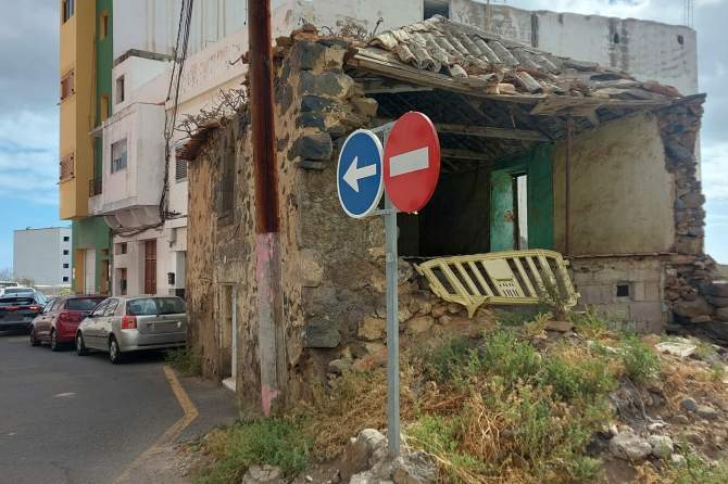 Otro ejemplo flagrante del “patrimonio olvidado” es la casa medio derruida de la calle Arauz en Los Llanos de San Gregorio, cuyo frontis integra una ventana con arco conopial en cantería gris junto con la puerta de entrada al inmueble con inscripciones. Con mucha frecuencia paso por delante de esa casa y siempre comento lo mismo, esta casa no sólo representa un peligro de venirse abajo con el consabido riesgo para los peatones, sino que también se está corriendo el riesgo de que esa ventana desaparezca definitivamente del patrimonio cultural de Telde. Medios hay para rescatarla, si no a instancia de parte, sí de oficio por la Administración Pública.