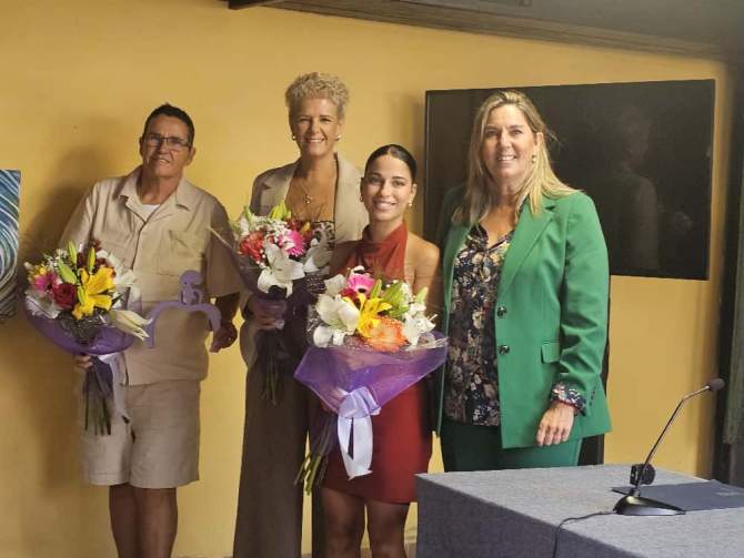 Por su parte, Aura García fue distinguida por continuar una tradición familiar que ya alcanza la cuarta generación en el sector pesquero. Al frente de la empresa Compaluna Pescados Melenara y con un atunero que lleva su nombre, su historia representa la continuidad del tejido empresarial y familiar que sostiene la pesca tradicional en el municipio.