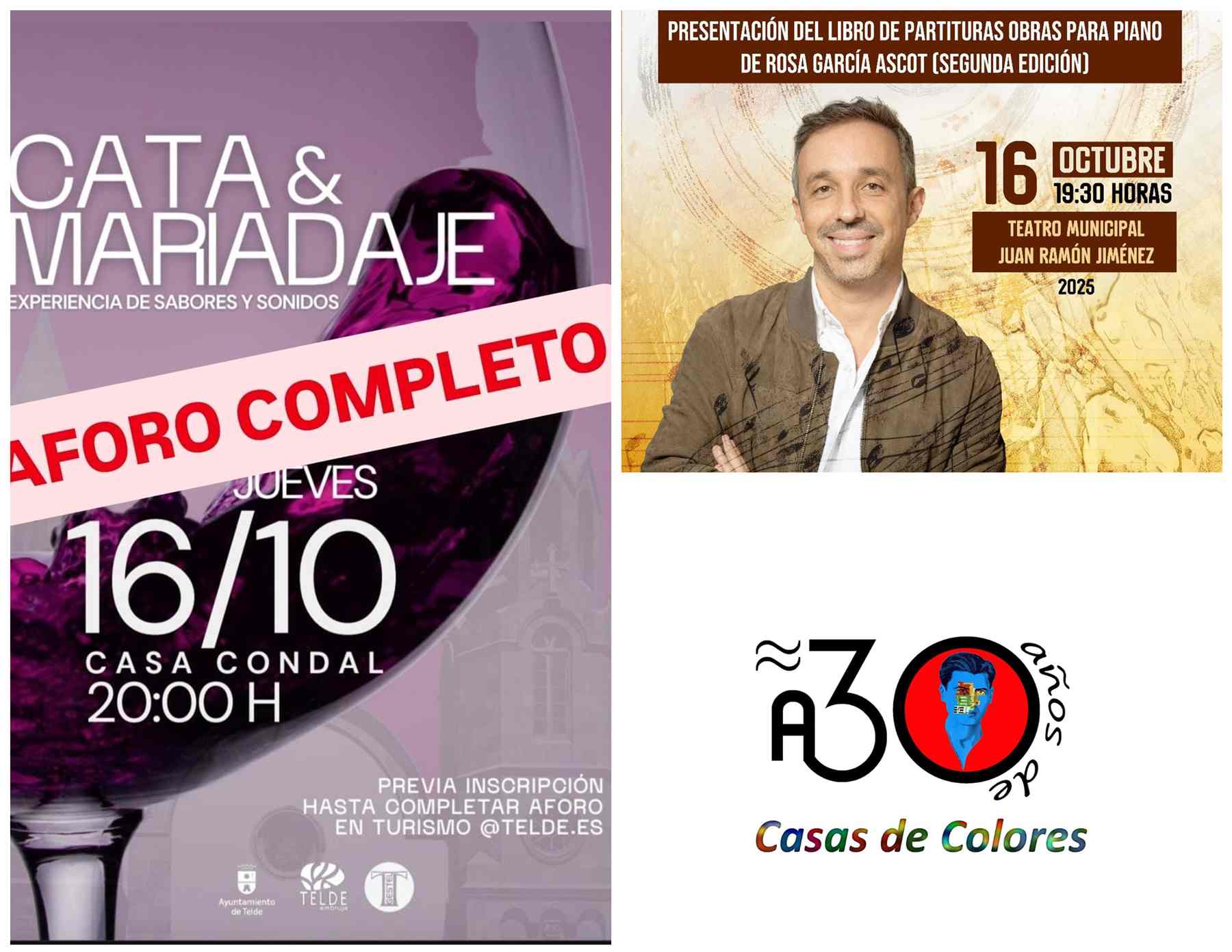 La ciudad de Telde ofrece este jueves 16 de octubre una completa agenda cultural con tres propuestas destacadas que combinan arte, música y gastronomía en distintos espacios del municipio. La programación invita a vecinos y visitantes a disfrutar de actividades variadas que celebran la creatividad y la diversidad cultural local.
