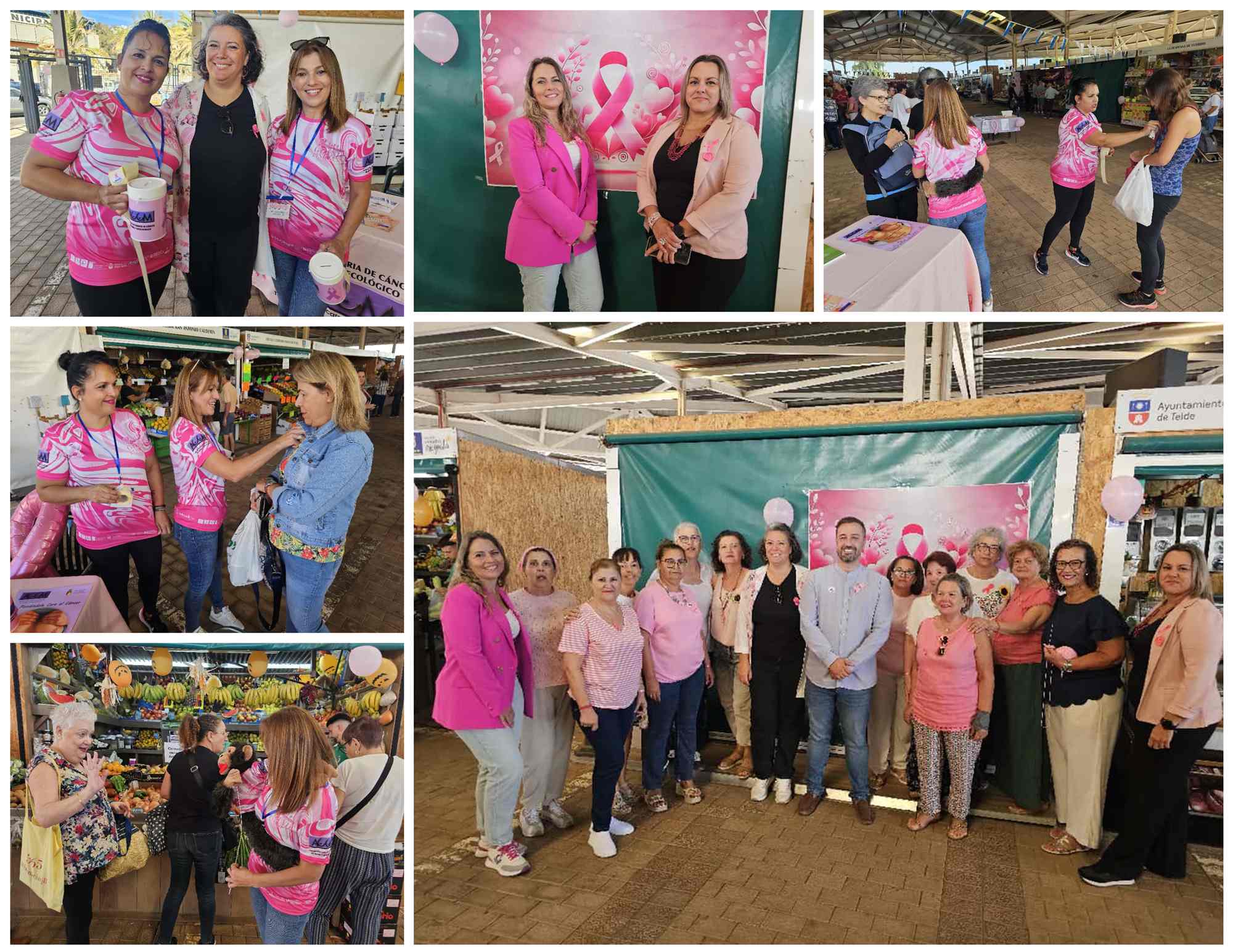 El color rosa fue protagonista, durante la jornada de este viernes 17 de octubre, en el Mercado Municipal de Telde. En forma de lazos, repartidos por las voluntarias de la Asociación Canaria de Cáncer de Mama y Ginecológico (ACCMyG); de flores, hechas a mano por las tejedoras de la ciudad; o incluso de información sobre cómo llevar a cabo la palpación correcta para una detección precoz; la lucha contra el cáncer de mama se hizo más visible que nunca en el municipio, exactamente el en área polivalente de Narea.
