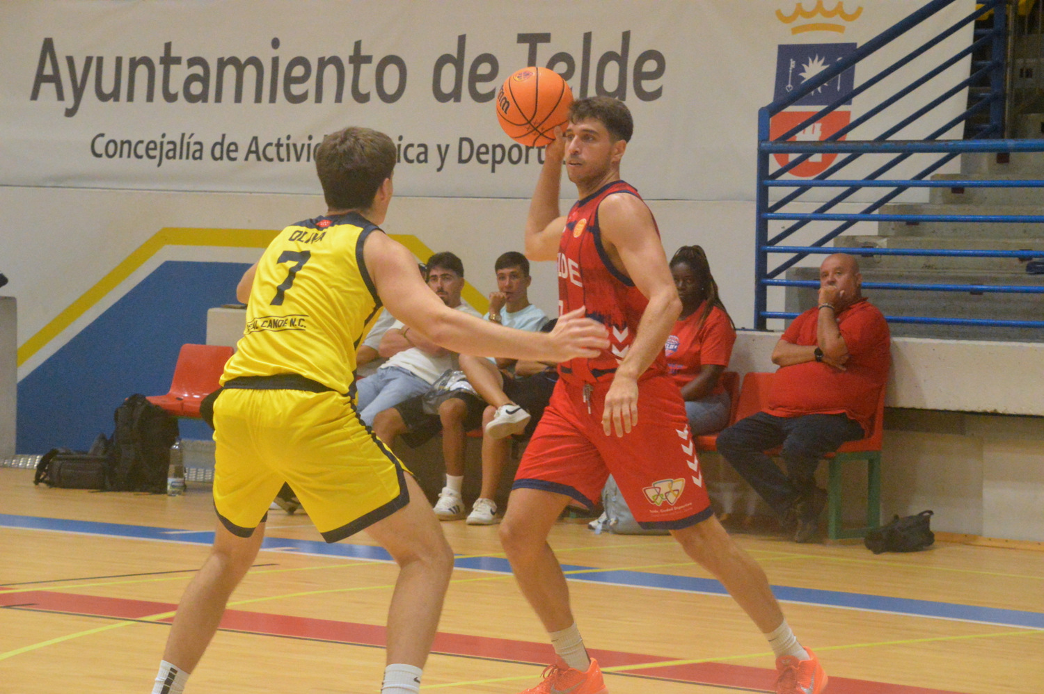 El posterior intercambio de golpes no benefició en nada al Baloncesto Telde. Jordan Jiménez y Guillermo Artiles anotaban seis puntos consecutivos a falta de cuatro minutos, algo que Oliva y García-Garrache dejaron sin efectos en términos de renta (31-45, 2:10). Guillermo Artiles sacó un nuevo dos más uno de lo que solo transformó el primero porque falló el segundo (33-47, 1:17). El encuentro se fue al descanso con un claro 33-48.