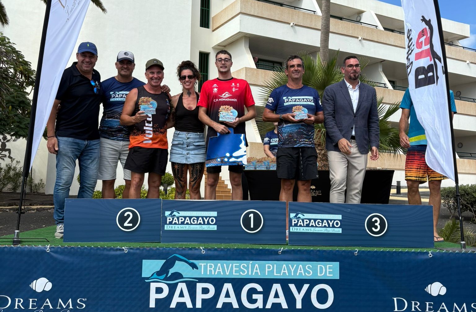 El evento, organizado por B15 Active, concluyó con la entrega de trofeos presidida por Ángel Lago, concejal de Deportes de Yaiza; Juan Monzón, consejero de Deportes del Cabildo; Abraham García, director de eventos del Hotel Dreams Lanzarote Playa Dorada, y Monique Meine, presidenta de la Asociación AlanEM. El almuerzo solidario posterior puso fin a una jornada marcada por el compañerismo, la emoción y el espíritu deportivo.