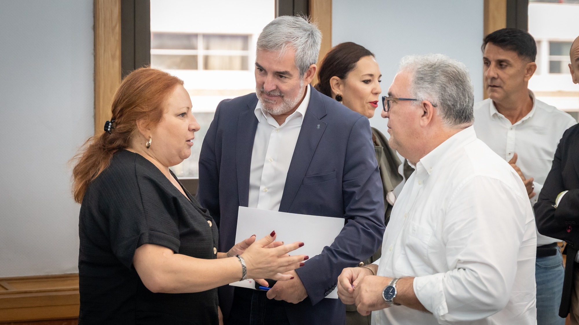 Durante el encuentro, el titular del Gobierno de Canarias destacó la apuesta del presupuesto por las personas, al potenciar medidas que garanticen la sostenibilidad y la mejora del sistema del bienestar y la prestación de los servicios públicos esenciales como sanidad, educación, servicios sociales y acceso a la vivienda. “Nuestra prioridad es el bienestar de todos los canarios y canarias y el avance como sociedad solidaria y comprometida con nuestra gente”, subrayó.