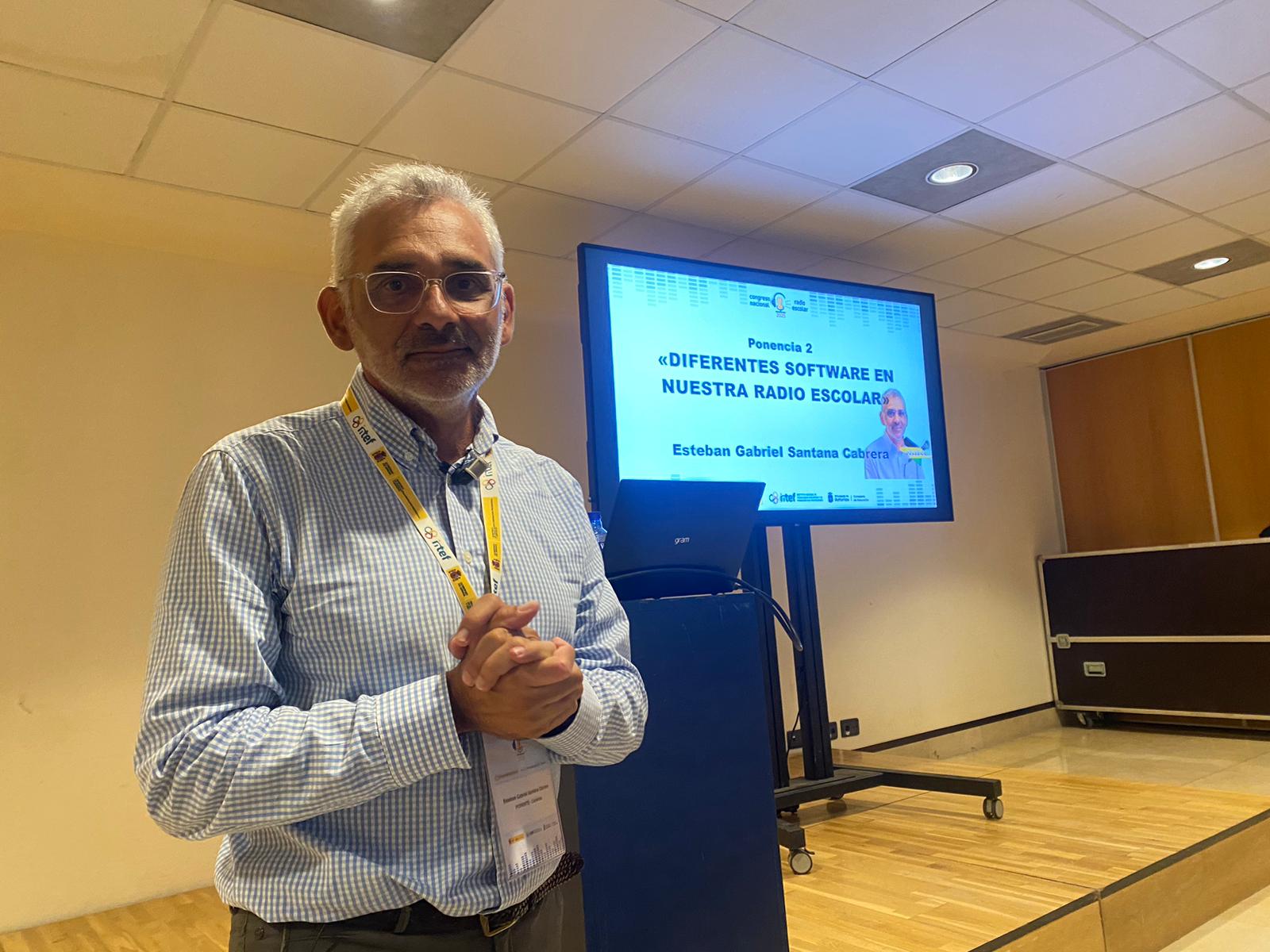 Tuve también la suerte de participar con una ponencia titulada “Diferentes software para la radio escolar”, donde pude compartir con mis compañeros el trabajo que realizamos en Radio Los Giles, una emisora humilde pero cargada de ilusión, igualdad, saberes, sostenibilidad y aprendizajes compartidos. En nuestro proyecto, los alumnos no solo aprenden a usar programas de edición o grabación, sino que descubren el valor del proceso comunicativo, desde la idea inicial hasta la emisión final. La radio, en este sentido, se convierte en un aula viva, donde el error no castiga, sino que enseña, donde el aprendizaje se construye colectivamente, sin la rigidez de un examen tradicional.