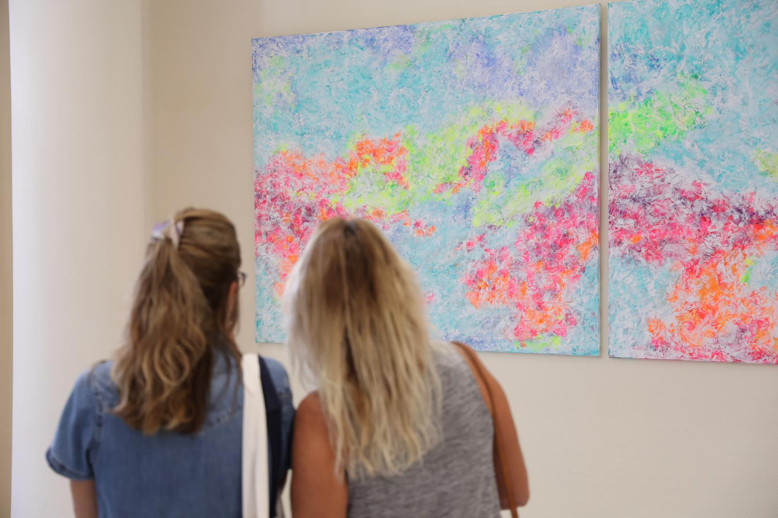 “Fui una mujer trabajadora, restauradora, viajera, pero con el cuidado de mi familia, renuncié a mis sueños”, expresó la artista. “Empecé de nuevo a retomar mi faceta artística cuando la vida me dio una nueva oportunidad”. “Esta obra refleja con estos colores vibrantes como me siento; una mujer afortunada”, manifestó la pintora durante la inauguración.
