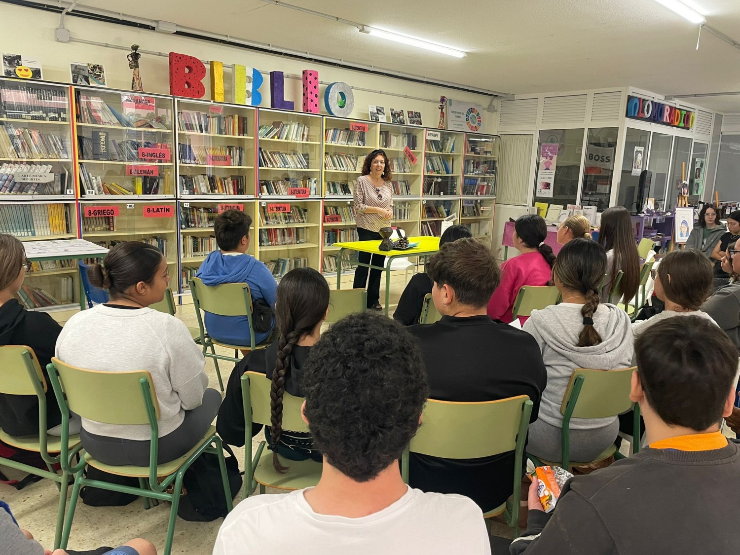 María Jesús Alvarado impartió una charla en el IES Lomo La Herradura (Foto cedida por el centro)El IES Lomo de La Herradura celebró este martes un encuentro literario con la escritora y cineasta María Jesús Alvarado con motivo del Día de las Escritoras en la Biblioteca Berbel de Canarias del centro educativo y contó con la participación de alumnado de 3º de ESO y 1º de Bachillerato.