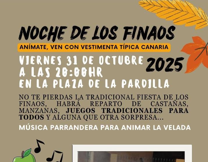 El barrio de La Pardilla volverá a rendir homenaje a una de las tradiciones más arraigadas de Canarias con la celebración de la Noche de los Finaos, una cita organizada por la Asociación Vecinal Las Mansas que tendrá lugar este próximo viernes 31 de octubre, a partir de las 20.00 horas, en la plaza del barrio.