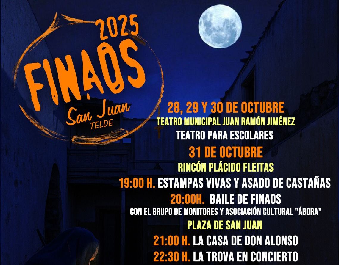 Este 28, 29 y 30 de octubre, el Teatro Municipal Juan Ramón Jiménez acoge funciones teatrales para escolares, a cargo de la Escuela Municipal de Folclore de Telde, para mostrar a los más jóvenes cómo las generaciones pasadas vivían los Finaos. Más de una decena de centros educativos del municipio serán partícipes en estas jornadas, con más de 1.150 alumnos que pasarán durante estos días por la sala de la Casa de la Cultura.