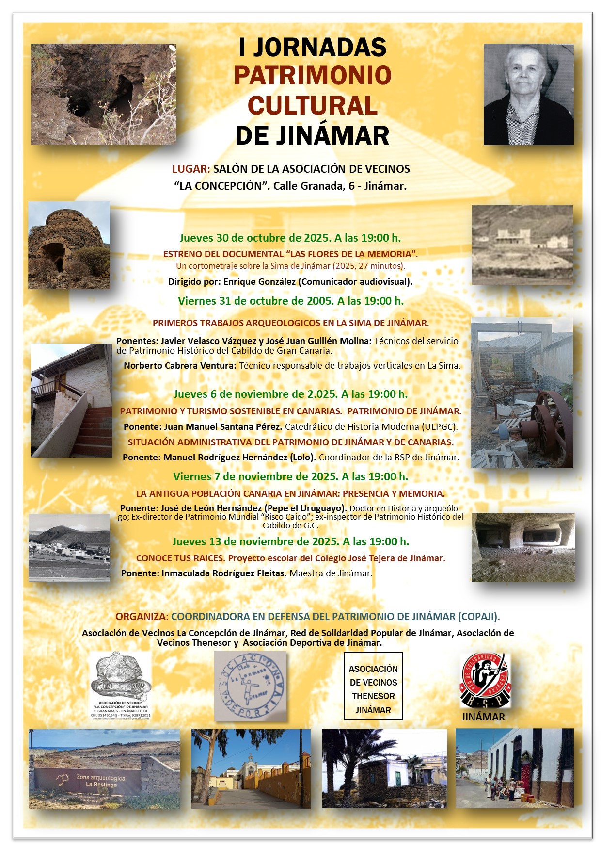 La COPAJI, integrada por la Asociación de Vecinos La Concepción, la A.V. Thenesor, la Red de Solidaridad Popular de Jinámar y la Asociación Deportiva Jinámar, ha hecho un llamamiento abierto a todas las personas, colectivos e instituciones comprometidas con la defensa del patrimonio cultural y la memoria histórica.