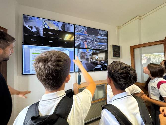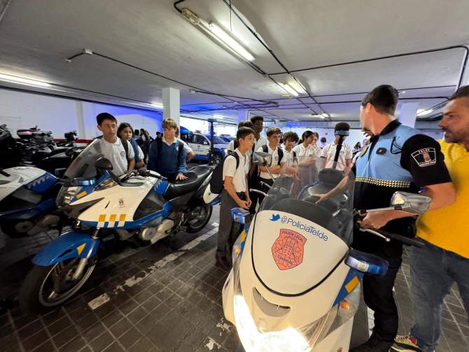 Posteriormente, pasaron por la plaza de San Juan y continuaron la ruta a pie hasta la Jefatura de la Policía Local, donde vieron el funcionamiento de las cámaras de seguridad y tráfico, en el puesto de control de la comisaría, y montaron en un coche patrulla, entre otras actividades.