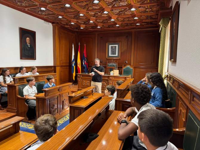 Las Casas Consistoriales de Telde fueron el punto de encuentro, en la mañana de este miércoles, entre el alcalde de la ciudad, Juan Antonio Peña, y el alumnado de 1º de la ESO del CEIP Las Nieves, ubicado en Marzagán. Una visita en la que más de 40 estudiantes aprendieron, de mano del primer edil, el funcionamiento del Ayuntamiento y del Salón de Plenos, entre otros datos históricos relacionados con los diferentes edificios institucionales.
