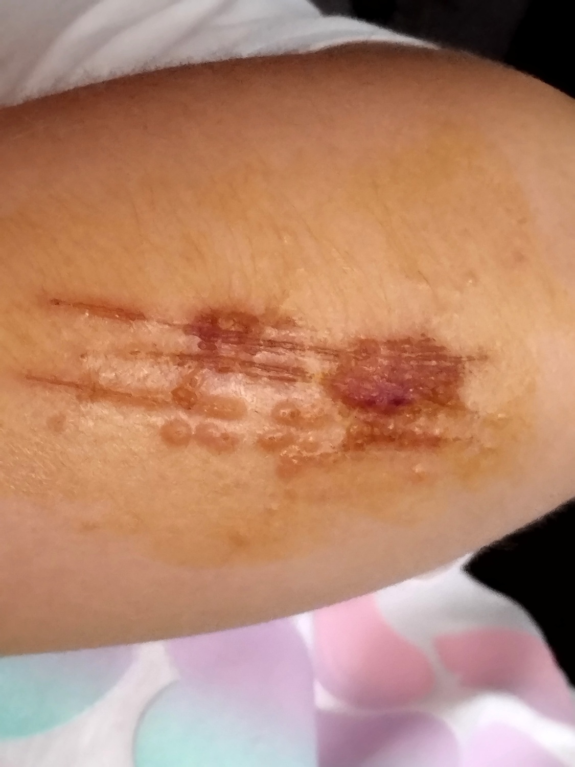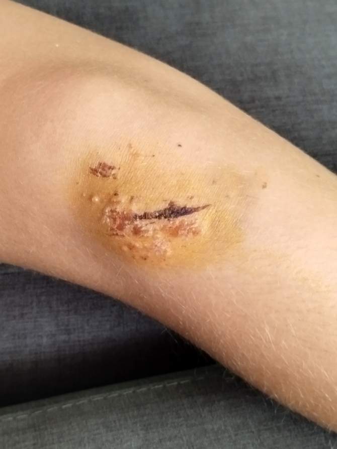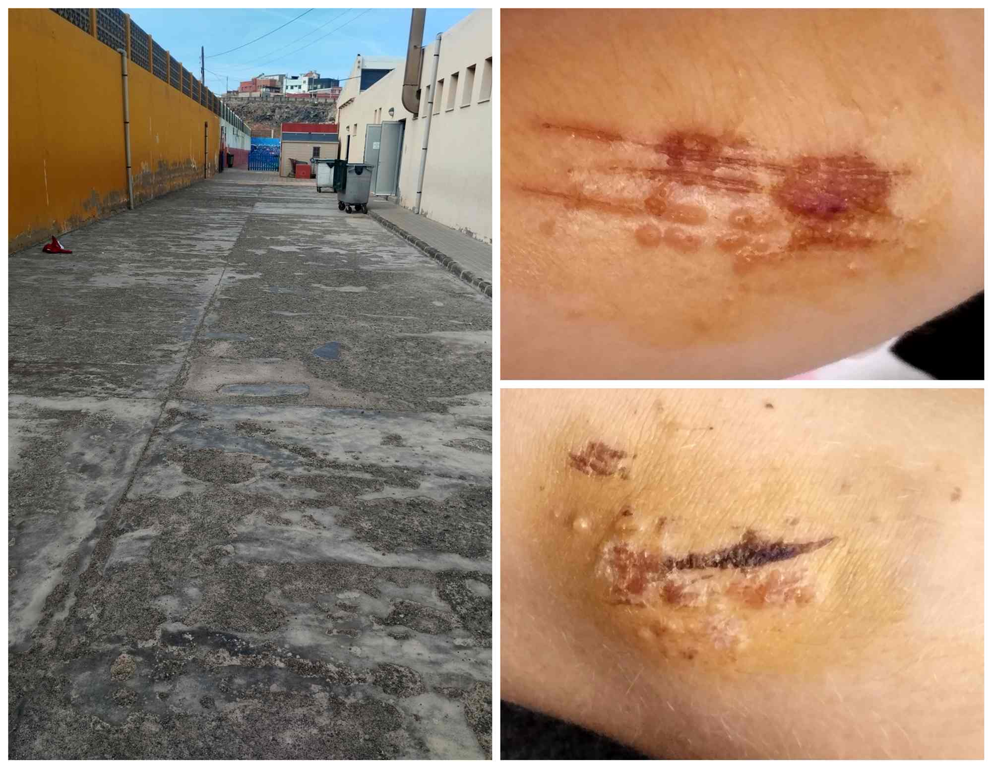 El menor resultó con erosiones y heridas superficiales en el brazo y el codo, con raspaduras y costras compatibles con una caída sobre una superficie áspera o deteriorada, según puede observarse en las fotografías remitidas por sus familiares a TELDEACTUALIDAD.