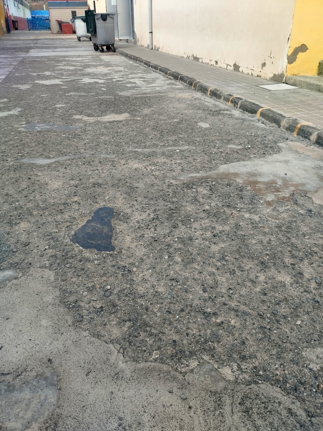 Un alumno del CEIP La Garita sufrió recientemente una caída en una de las zonas exteriores del centro, cuyo pavimento presenta un avanzado deterioro. En las imágenes remitidas a este medio se aprecia una superficie irregular, con parches, grietas y tramos erosionados, que se encuentra justo en la parte posterior del recinto escolar.