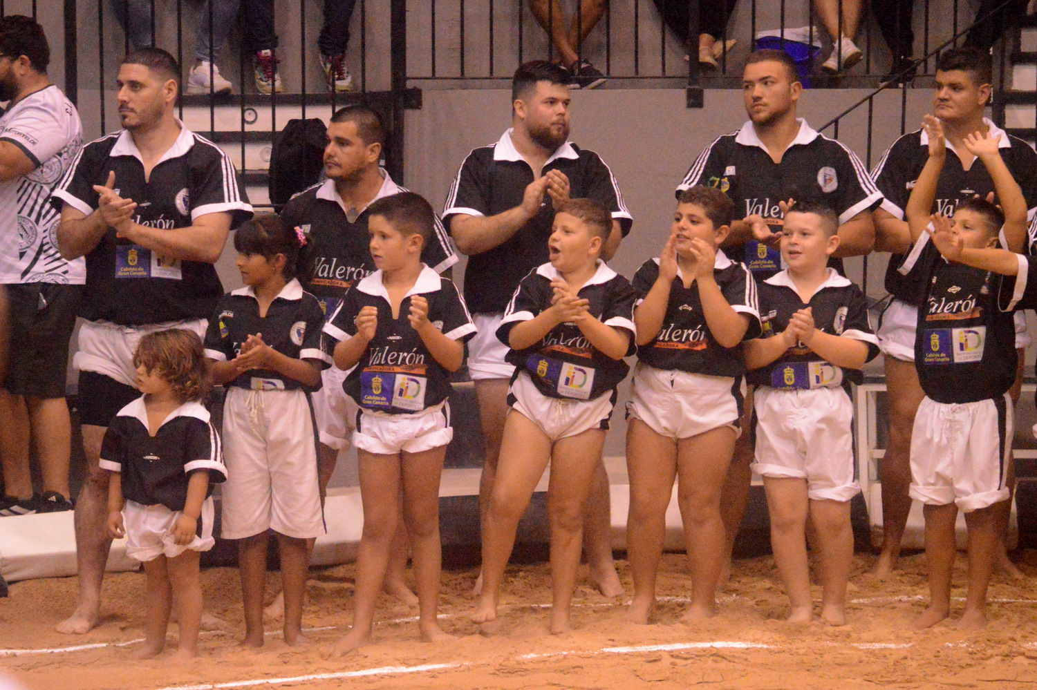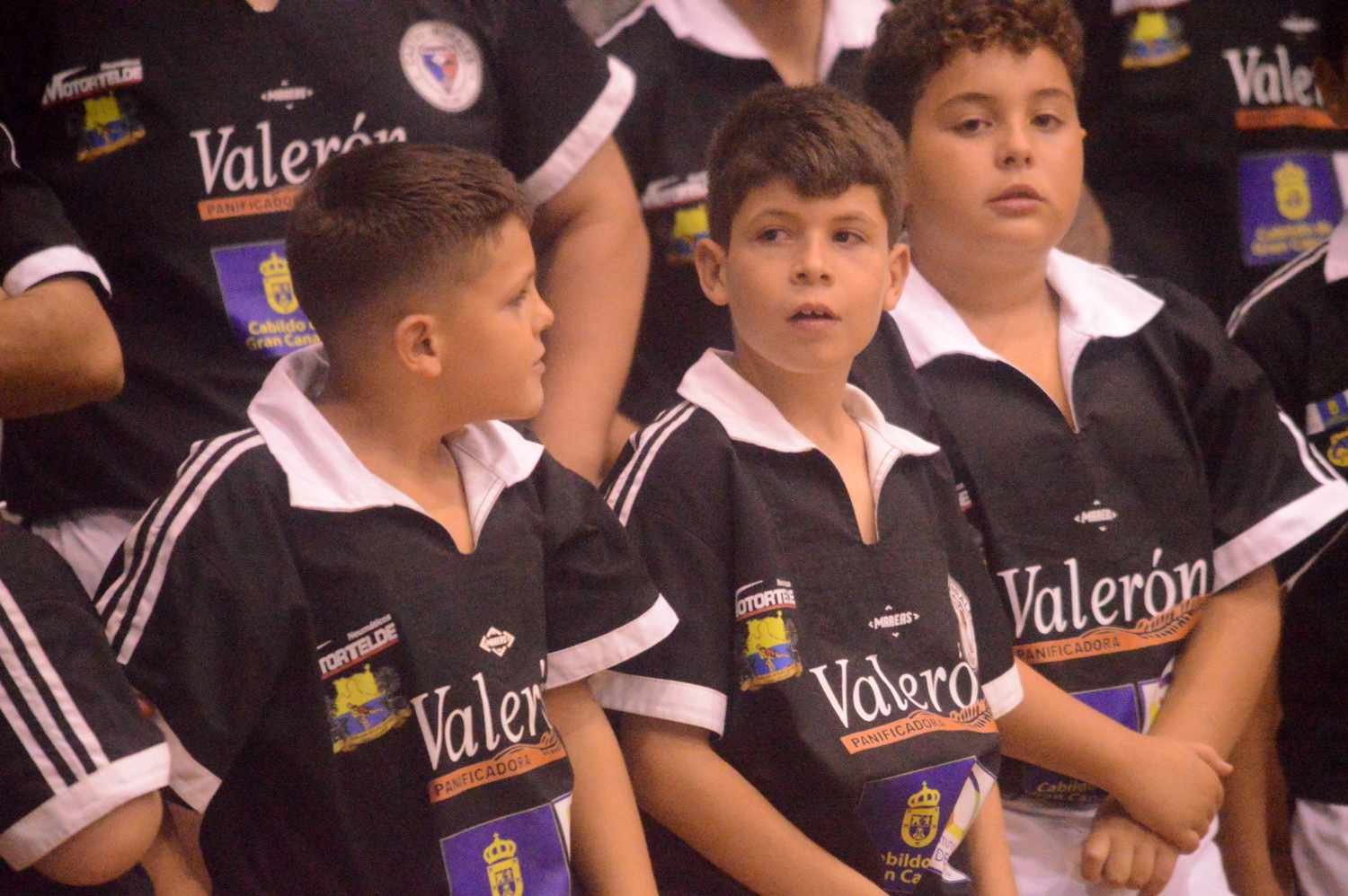 Con el luchador inactivo (por enfermedad) José Roales en los micrófonos, los componentes de las plantillas teldenses desfilaron por el perímetro de la arena de Telde bajo el mismo protocolo de entrada de equipos a una lucha, desde el puntal A Kevin Acosta hasta el luchador más joven de la cantera.