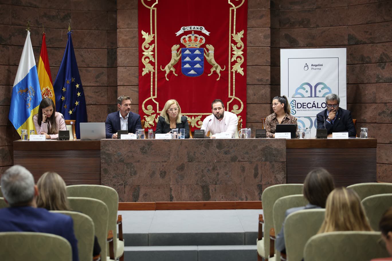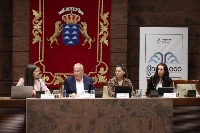 La inauguración institucional estuvo a cargo de Mario Cabrera, secretario primero del Parlamento de Canarias; Elvira Vacas, presidenta de la FEDE; y Carlota Boix, responsable de Relaciones Institucionales y Acceso al Mercado de Angelini Pharma.