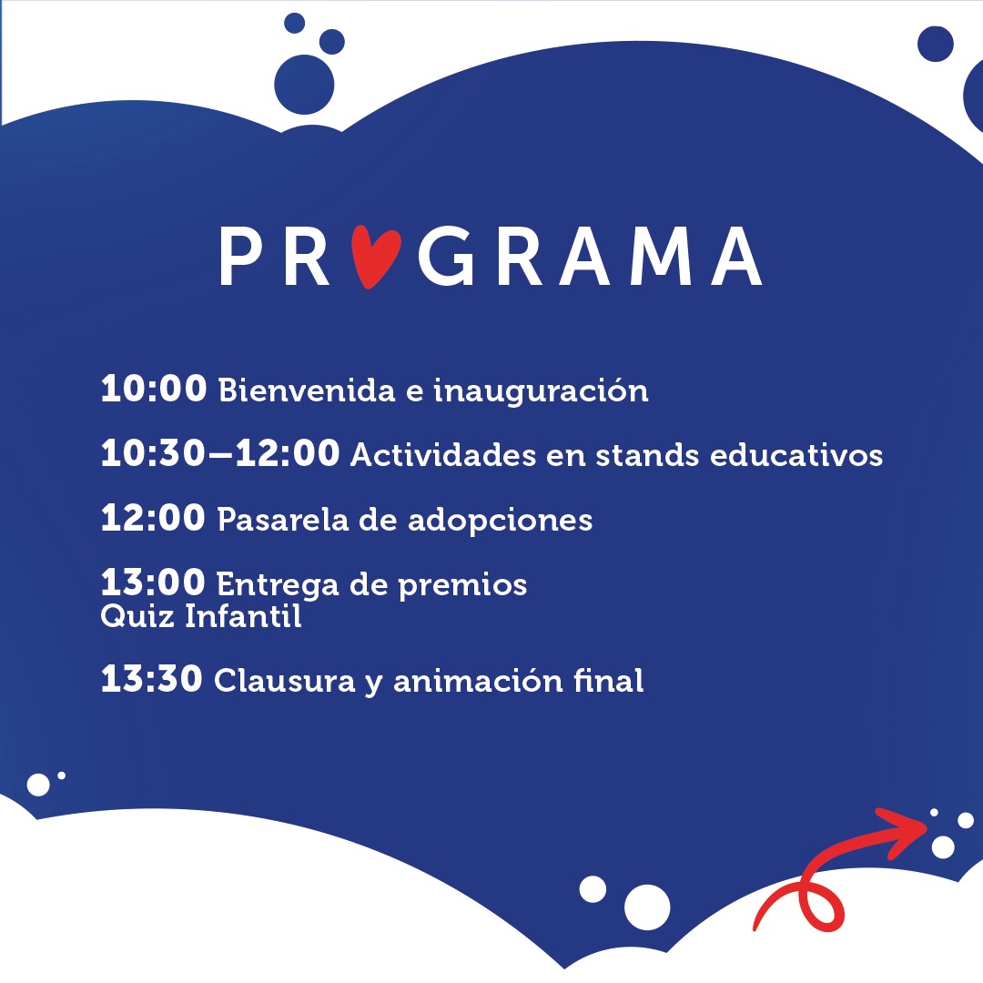 Además, durante el encuentro, habrá demostraciones en vivo, pasarela de adopciones, quiz infantil con entrega de premios, zona de picnic, dos food truck donde comer, juegos para los más pequeños y un photocall muy especial para posar con los peluditos, bajo el nombre Mi compañero y yo.