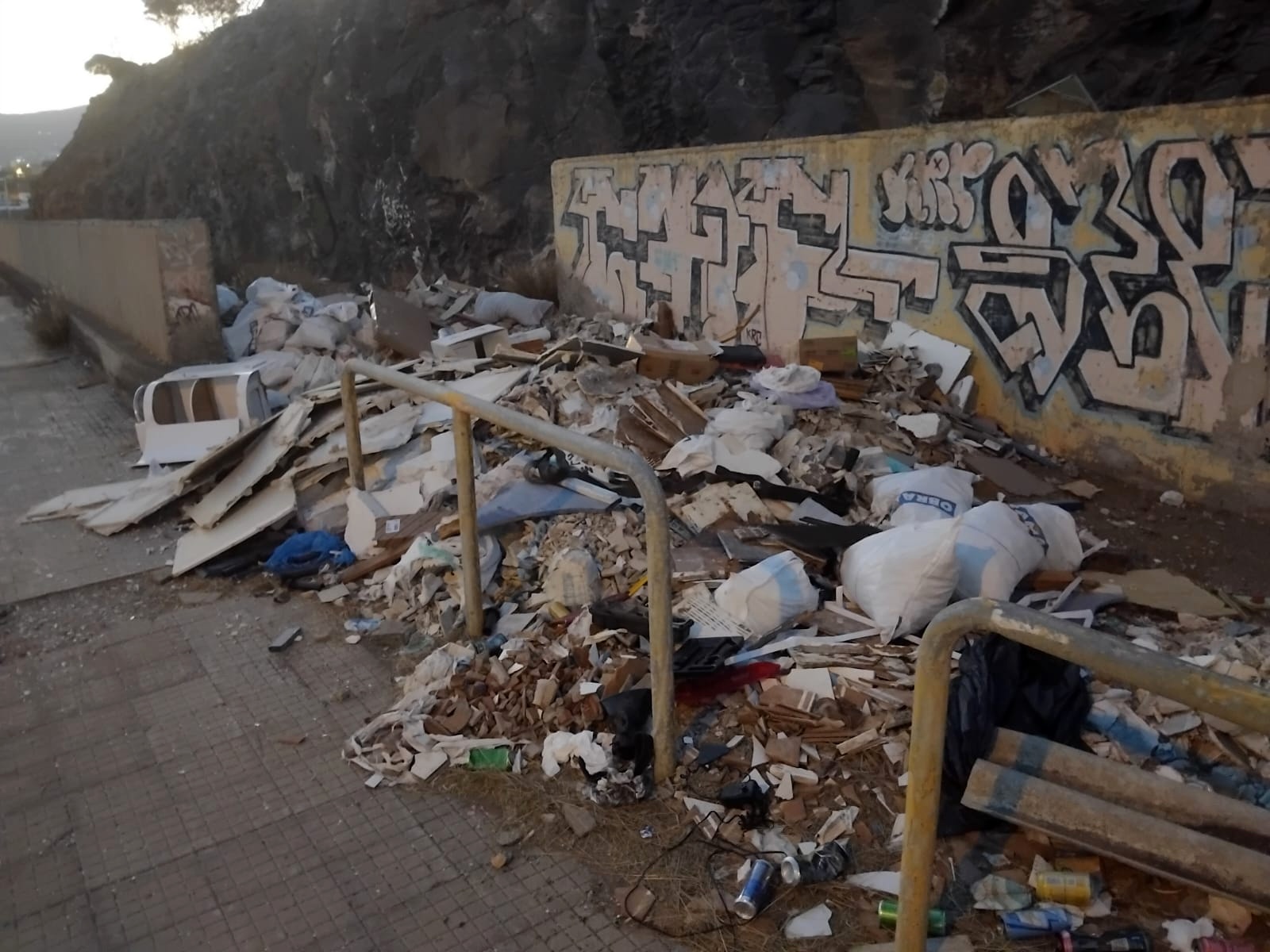 Lo que se debería de hacer es hormigonar esos cachos que están abiertos y ya se verá si tiran los escombros ahí, cerrar todas esas aperturas del muro ese y también decir que lo que tienen que hacer es sacar fotos y vídeos a los chusmas que lo hacen y denunciarlos, porque si no lo hacen ellos que viven ahí no sé quién lo hará.