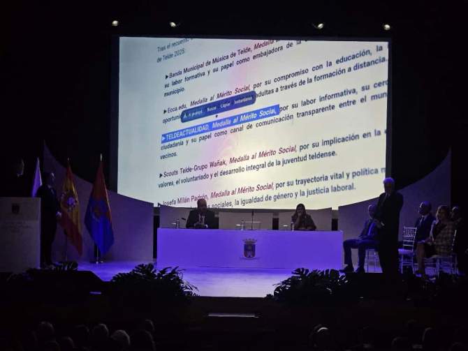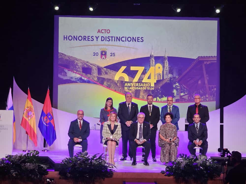 La ciudad de Telde cumple hoy 674 años desde su fundación y lo ha celebrado, en la tarde de este viernes 7 de noviembre, con una emotiva ceremonia de Honores y Distinciones que no dejó indiferentes y premió a siete homenajeados con sus respectivas Medallas al Mérito. Además, como broche de oro de la velada, su alcalde, Juan Antonio Peña, sorprendió a los asistentes a la gala, en el Teatro Municipal Juan Ramón Jiménez, con la presentación del logo que representará la nueva imagen institucional del municipio en 2026, con motivo de su 675 aniversario.