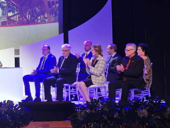 El acto, en una salón de butacas abarrotado, entre representantes políticos del Cabildo, Ayuntamientos, exalcaldes y exalcaldesa de la ciudad, diputadas regionales, miembros del cuerpo consular, militares, familiares de los galardonados y ciudadanía en general, fue conducido por el presentador Ibán Padrón, en un ambiente cercano y repleto de emociones. Así, tres piezas de a violín dieron la bienvenida al público, antes de recibir al regidor de la ciudad, quién presidió la ceremonia, junto al concejal de Cultural, Juan Martel, y la secretaria general del Pleno en funciones, Sandra Jiménez.
