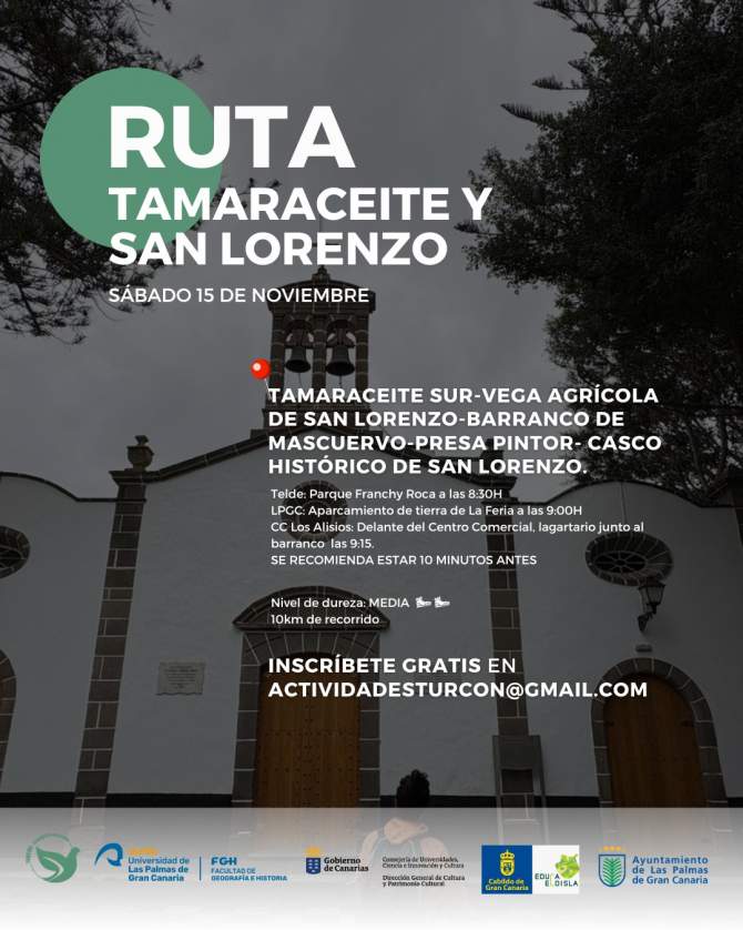 El itinerario, de diez kilómetros y nivel medio, recorrerá la Vega Agrícola de San Lorenzo, el barranco de Mascuervo, la Presa del Pintor y el casco histórico de San Lorenzo. La salida está prevista a las 8.30 horas desde el Parque Franchy Roca (Telde) y a las 9.00 horas desde el aparcamiento de tierra de La Feria, en Las Palmas de Gran Canaria, con inicio de caminata a las 9.15 horas en el entorno del Centro Comercial Los Alisios.