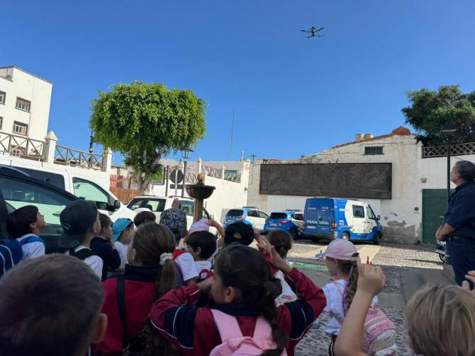 La última parada fue la Jefatura de la Policía Local, donde pudieron conocer la sala de mandos, el patio central, el garaje del edificio y el funcionamiento de la Unidad de Drones (Unidron).