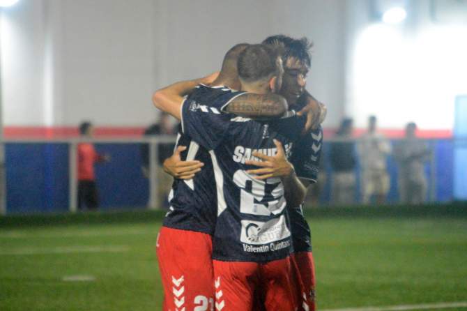 Joel Zamora celebra su gol con Samuel Yánez (Foto: Juan Antonio Hernández)La Unión Deportiva Telde consiguió este martes su primer triunfo en su nueva etapa en Tercera RFEF al vencer por 3-2 al CD Herbania en el estadio Pablo Hernández Morales. Los goles de Joel y Hugo en la primera parte, más el de Gabriel Dámaso en el 80, le dan al equipo la primera alegría de la temporada. Aythami y Tobías marcaron para los visitantes.