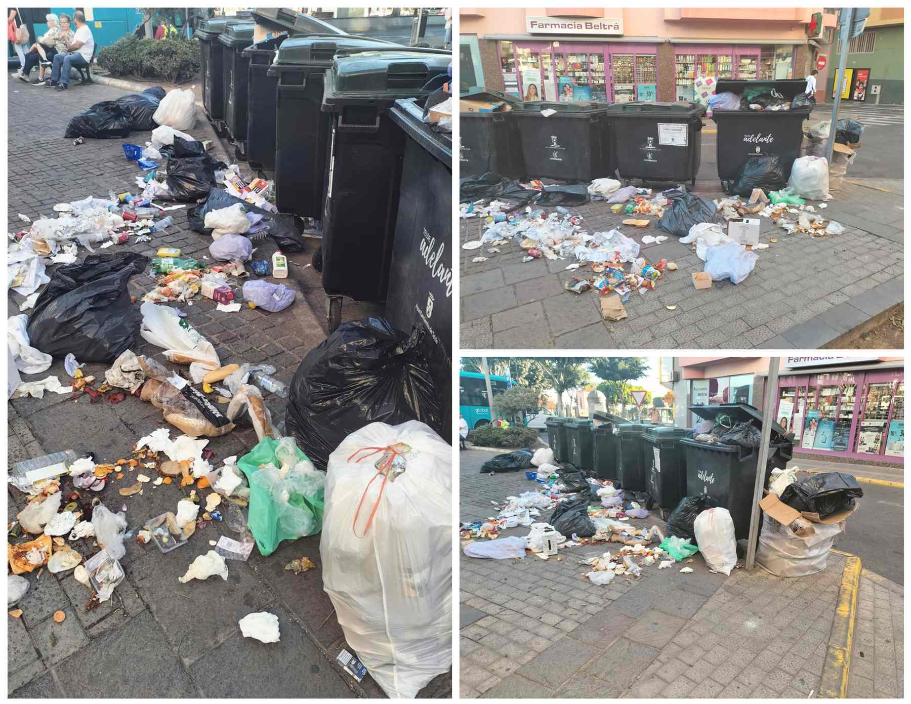 El entorno de los contenedores de la calle Poeta Fernando González, junto a la Farmacia Beltrá, presenta este miércoles un estado lamentable. En pleno corazón comercial de Telde, el pavimento aparece cubierto de bolsas rotas, restos de comida, envases, cartones y desperdicios, en una estampa que refleja la falta de civismo de quienes depositan la basura fuera de los contenedores, en una jornada de descanso del personal de recogida de residuos por la celebración del día de su patrono. .