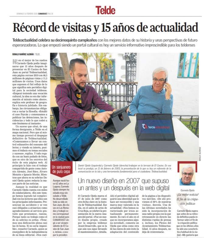 El reconocimiento llega en un momento simbólico, cuando TeldeActualidad celebra su vigésimo aniversario, reafirmando su compromiso con el periodismo de proximidad y con el desarrollo de una información libre, veraz y al servicio del bien común.