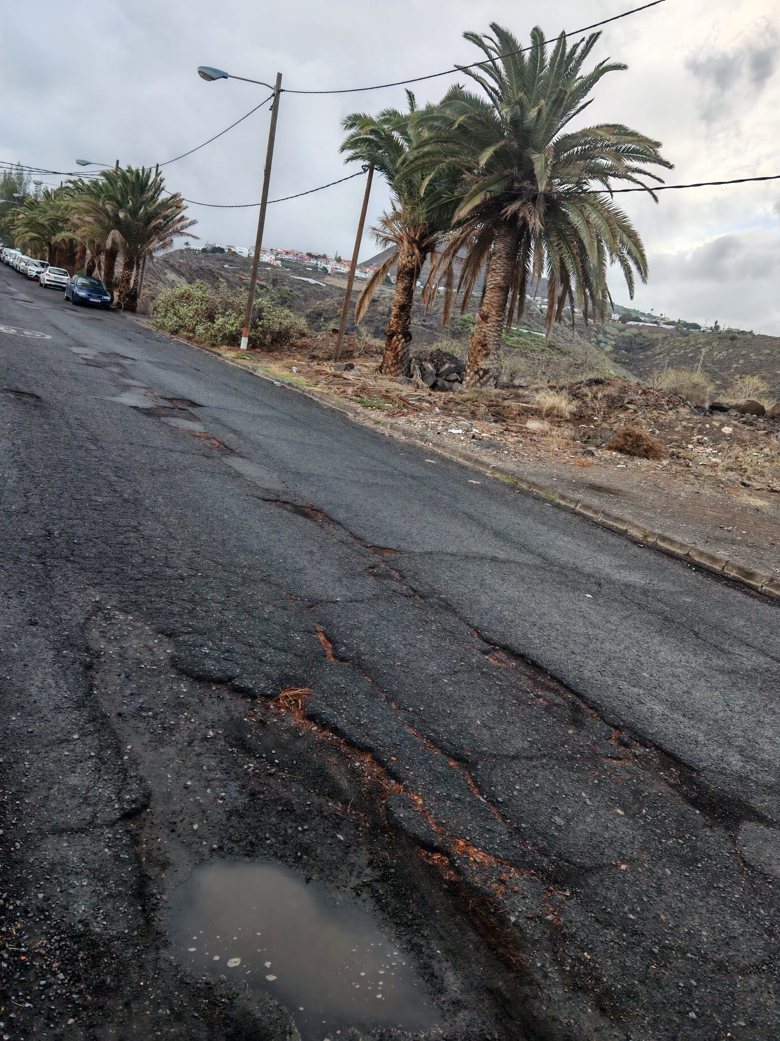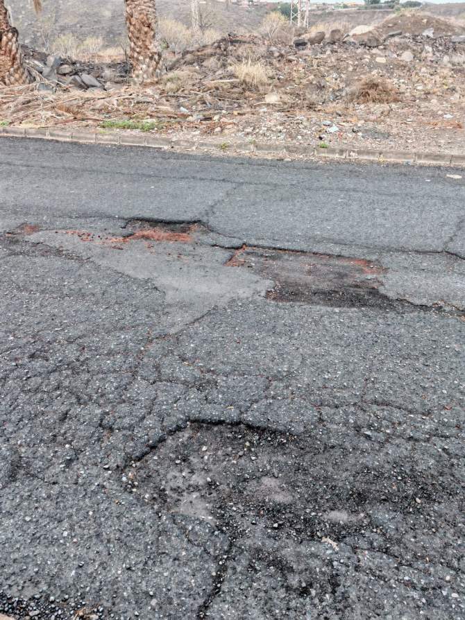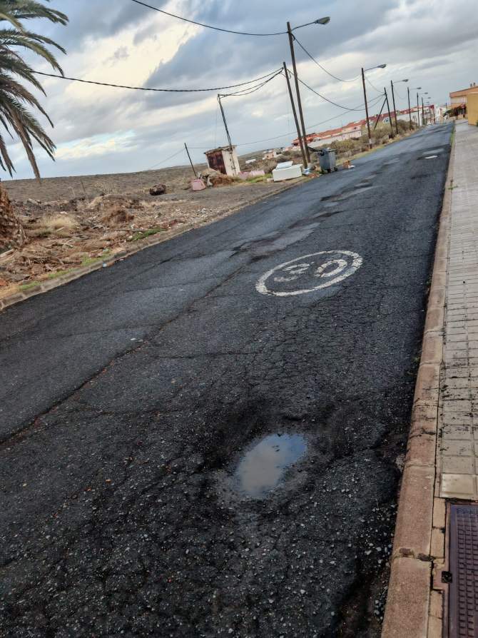 Las imágenes remitidas muestran una tónica habitual y para lo que los residentes no ven fecha de final: tramos del firme con hundimientos, grietas y cavidades de distinto tamaño, en algunos casos acumulando agua de lluvia. Según explican los residentes, estos desperfectos afectan tanto al estacionamiento como a la circulación diaria de los vehículos que utilizan esta vía.