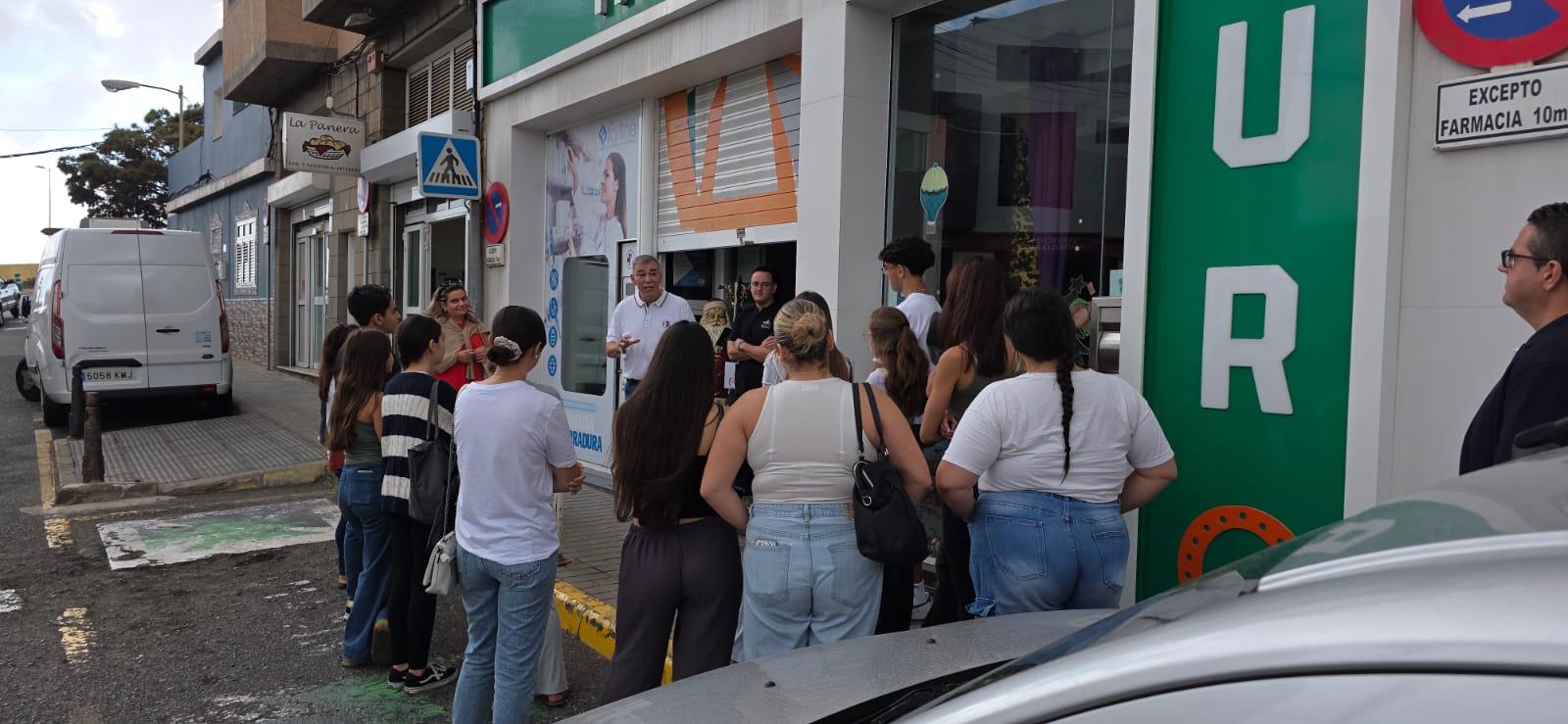 Esta actividad, dirigida por el farmacéutico Benjamín Suárez Falcón, se enmarca dentro de las prácticas del alumnado y tiene como propósito acercar el entorno académico al profesional, ofreciendo una visión directa y real del funcionamiento diario de una farmacia comunitaria.