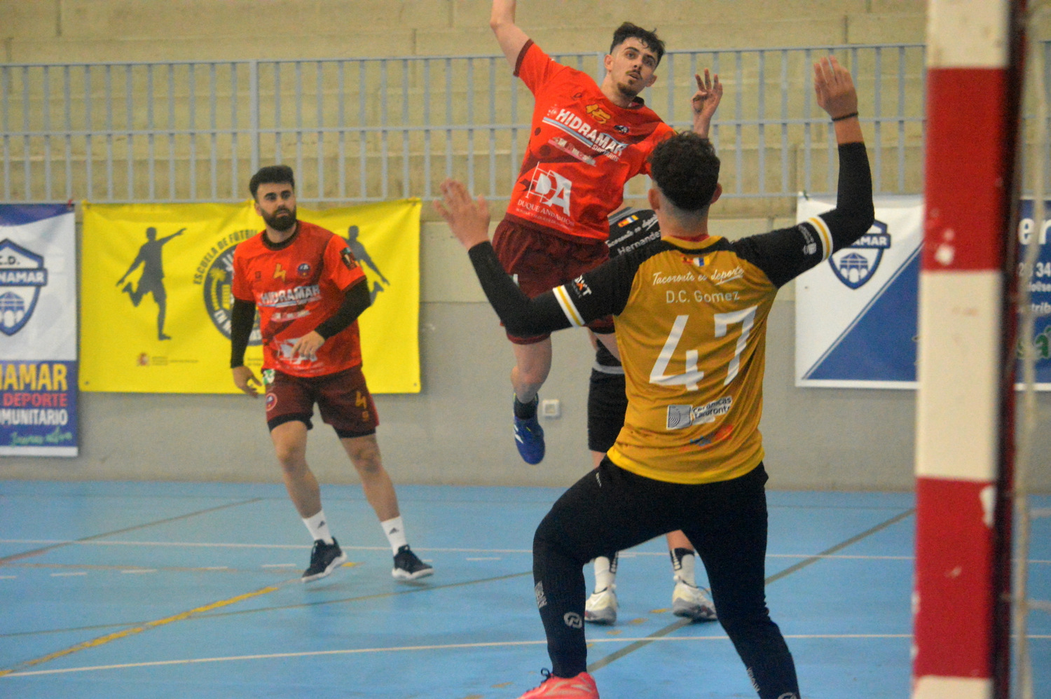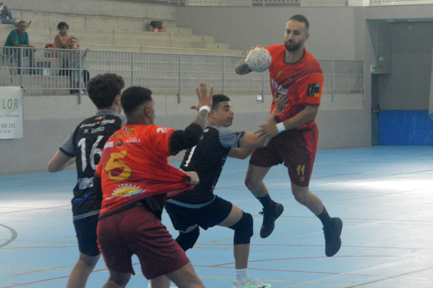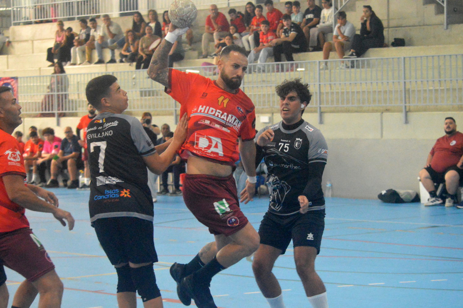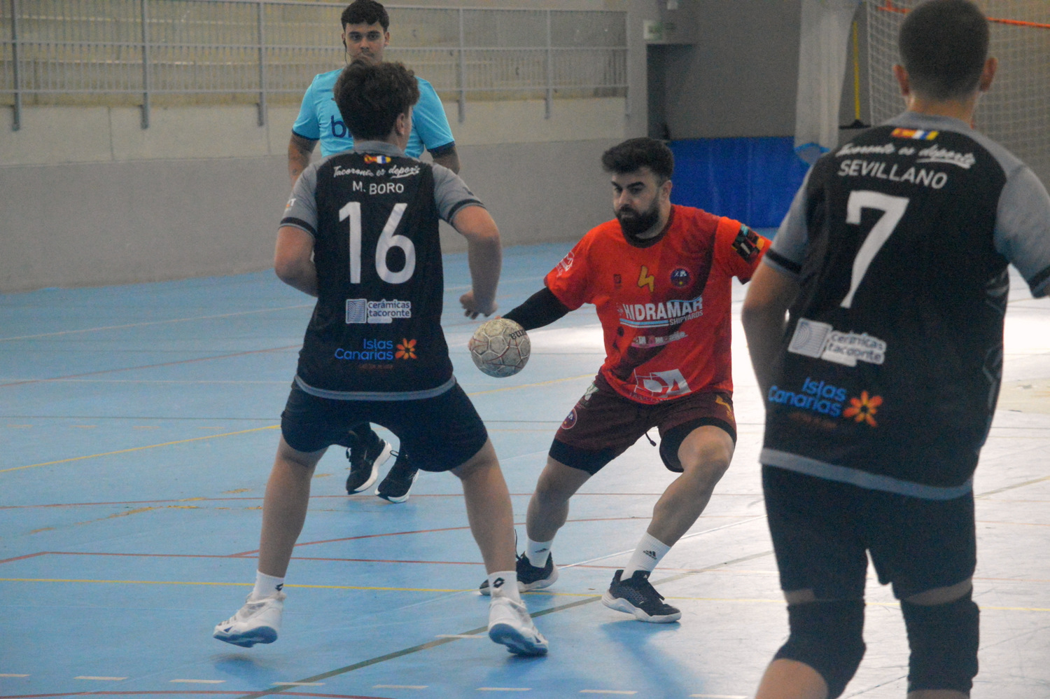 Emilio Roque, en un momento del partido (Foto: Juan Antonio Hernández)El UB Ciutel Ciudad de Telde arraso este sábado con el Sermather 13 de Mayo Lecomar Tejina por 41-24 (22-12 al descanso) en el pabellón Juan Carlos Hernández de Jinámar. El equipo se deshizo de un inicio errático e igualado, llevándose por delante a su rival con el liderazgo anotador de Kevin Morales y el candado de la portería de Alberto Medina (16 paradas).