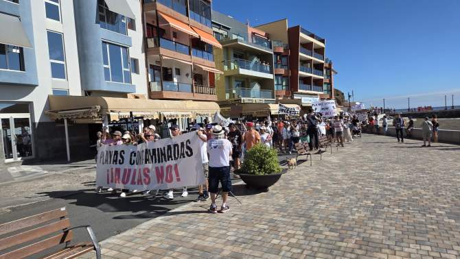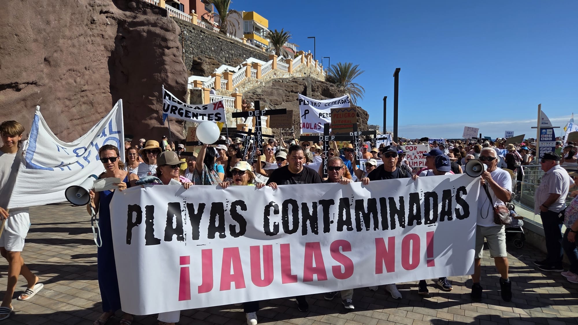 La marcha terminó arrancando pasadas las 11.00 horas con un ambiente de indignación acumulada tras semanas de episodios de suciedad en el agua, mortandad de peces, restos grasos en la superficie y playas cerradas. Los asistentes, muchos llegados desde Salinetas, Melenara, Taliarte, Playa del Hombre, La Garita y Ojos de Garza , portan pancartas con mensajes rotundos: “Jaulas No”, “SOS Litoral”, “Basta ya de contaminación” o “Queremos playas limpias”. '
