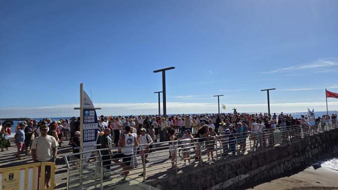Telde amaneció este domingo con un grito colectivo: “¡Mar limpio ya!”. Más de 1.500 personas han tomado en los últimos minutos el muelle de Melenara para iniciar la protesta convocada contra la contaminación marina que, durante el último mes, ha afectado gravemente al litoral del municipio por los vertidos procedentes de las jaulas marinas instaladas frente a la costa.