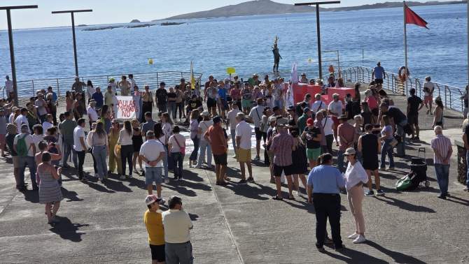 El manifiesto arrancó con una declaración de unidad territorial y emocional: "Aquí el mar no es solo paisaje: es vida, memoria, sustento e identidad". A partir de ahí, el mensaje fue directo: la ciudadanía acusa a las jaulas marinas de ser el foco del grave episodio contaminante que mantiene playas cerradas, genera malos olores, provoca capas aceitosas en la superficie y ha derivado, según relataron vecinos, en casos de otitis, irritaciones y vómitos tras el contacto con el agua.