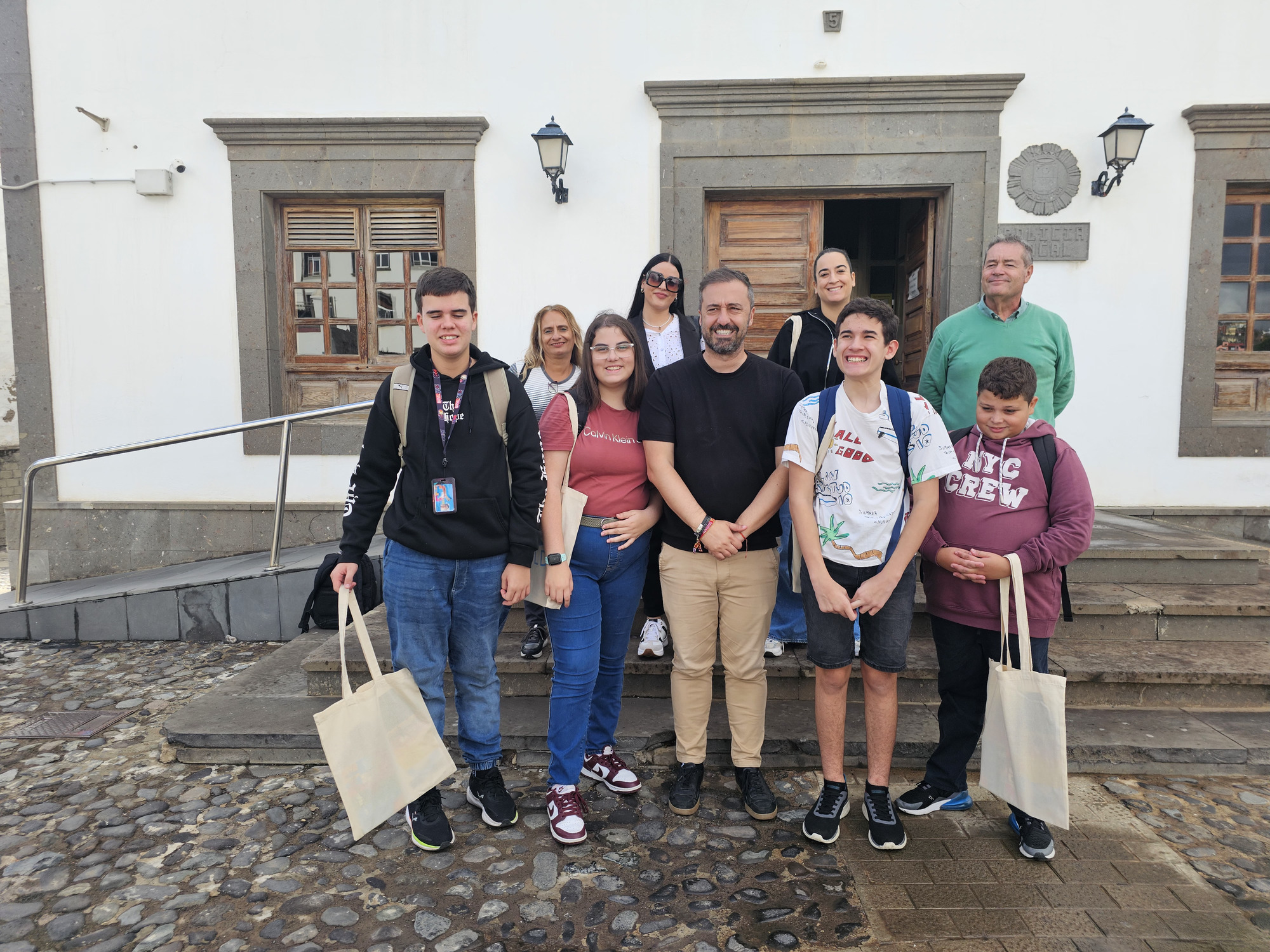 Las Casas Consistoriales fueron el punto de encuentro, en la mañana de este miércoles, entre el alcalde de la ciudad, Juan Antonio Peña, el concejal de Educación, Juan Pablo Rodríguez, y parte del alumnado del Aula Enclave del IES La Herradura. Una visita en la que cuatro estudiantes con necesidades especiales aprendieron, de mano del primer edil, el funcionamiento del Ayuntamiento y del Salón de Plenos, entre otros datos históricos relacionados con los diferentes edificios institucionales. Así, entre propuestas y dudas que lanzaron al regidor, siguieron una ruta por el barrio histórico de San Juan hasta el museo de la Casa Condal de Telde, acabando el recorrido en la sede actual del Ayuntamiento, en El Cubillo.