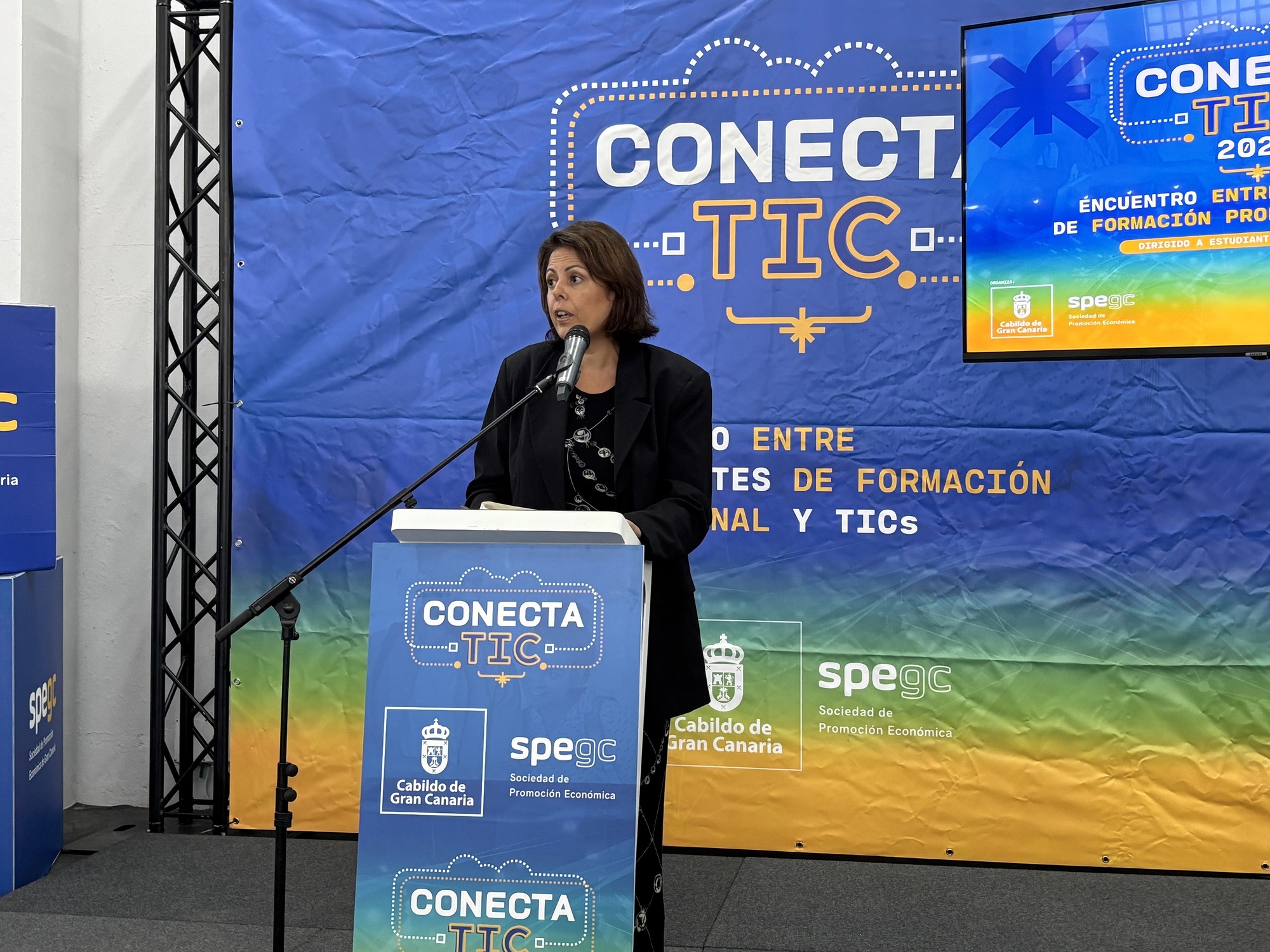 El Cabildo de Gran Canaria, a través de la Sociedad de Promoción Económica de Gran Canaria (SPEGC), y el Clúster Canarias Excelencia Tecnológica han presentado la décima edición de Conecta TIC. El encuentro, organizado con la colaboración de la Viceconsejería de Formación Profesional y Cualificaciones Profesionales del Gobierno de Canarias y de los centros de secundaria y formación profesional adscritos, reunió este miércoles a más de 526 estudiantes de Formación Profesional, 34 docentes y 25 empresas del sector tecnológico. Su objetivo principal es generar oportunidades laborales y adaptar la Formación Profesional a las necesidades reales del mercado.