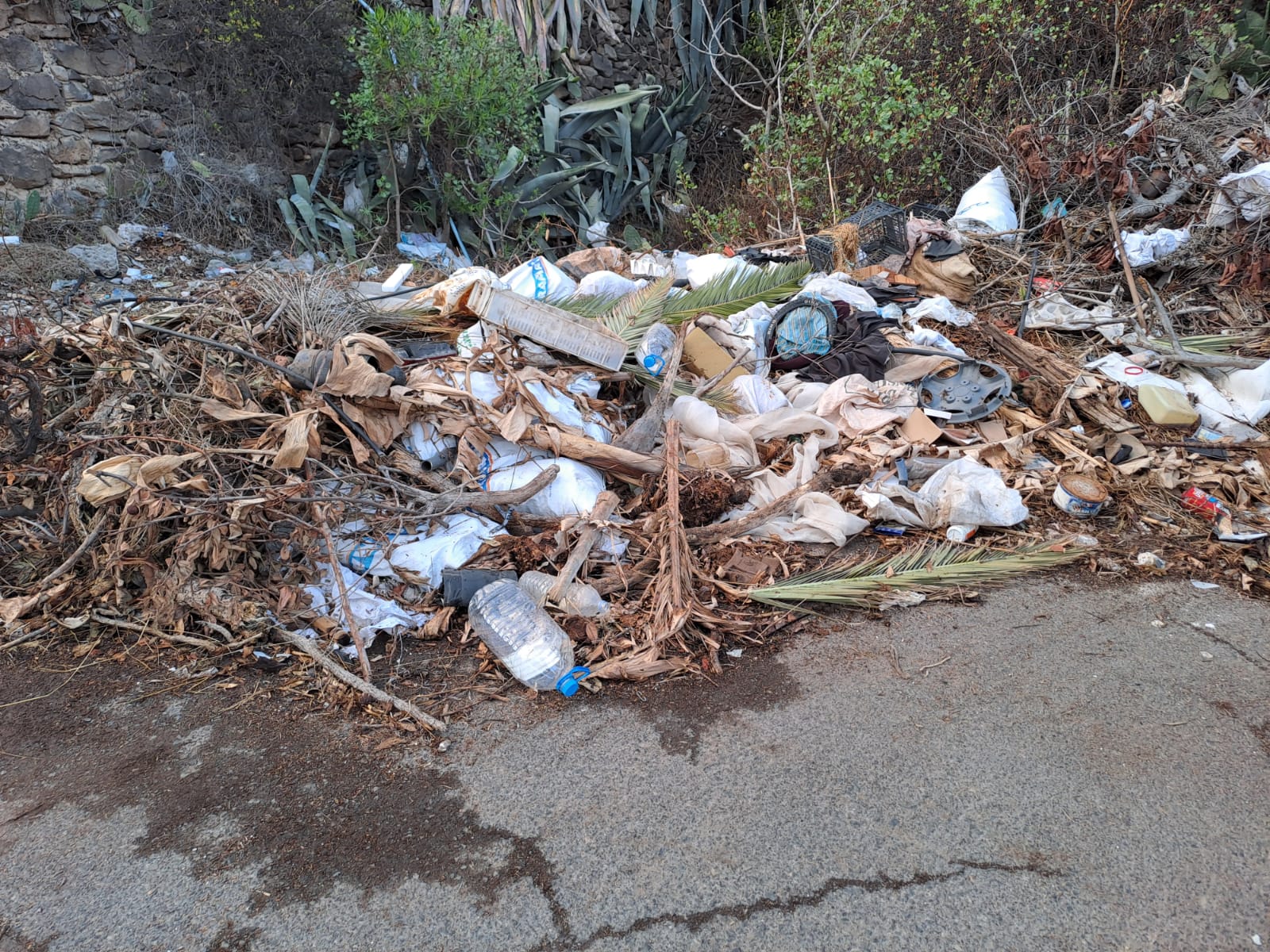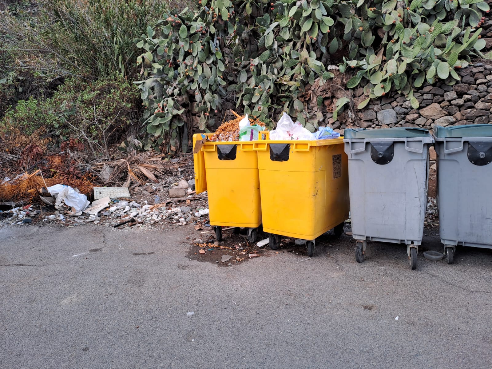 Vecinos de Valle de Casares critican la acumulación de basura, escombros, restos de poda y otros desperdicios junto a los contenedores de basura dispuestos en uno de los puntos del barrio.