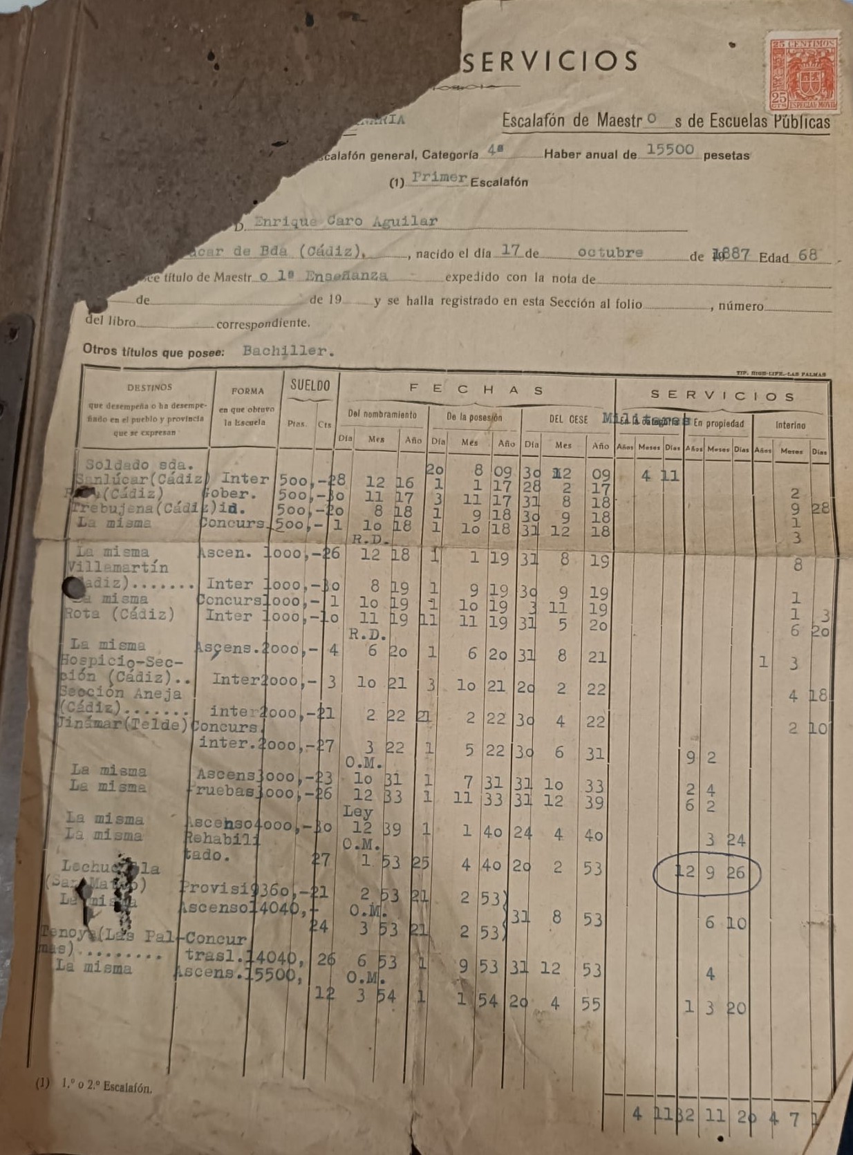 Enrique Caro era “un hombre funesto y peligroso” para la Comisión Provincial de Depuración del Magisterio de Las Palmas. Desde luego, una percepción muy distinta a la del que un día fue su pupilo, Monseñor Juan Ramírez Valido. En una entrevista concedida a La Provincia en el año 1991, el sacerdote nacido en Marzagán lo seguía recordando como “un gran maestro”.