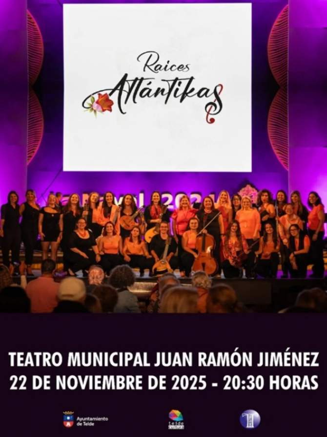 Telde celebra este fin de semana la programación especial por el Día de Santa Cecilia, patrona de la música, con un nuevo espectáculo que sube esta noche al escenario del Teatro Municipal Juan Ramón Jiménez: Raíces Atlántikas, una propuesta que pone en valor la identidad sonora del Archipiélago a través de un proyecto musical impulsado por mujeres.