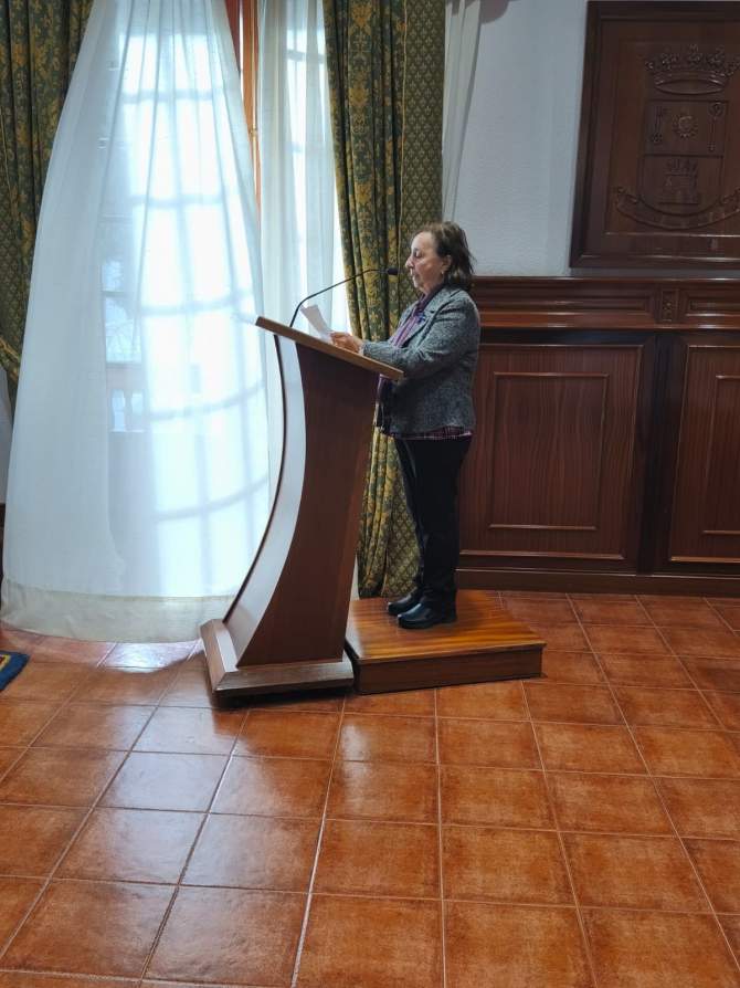 La intervención de Pino Monzón dio inicio después de que la concejala de Igualdad, Adela Álvarez, presentara su trayectoria profesional y cultural, donde se destacó su labor como maestra, autora de numerosas obras literarias y referente del folclore insular, tal como recoge la documentación oficial del acto. La lectura se guardó el habitual minuto de siliencias con ediles y público en pie.