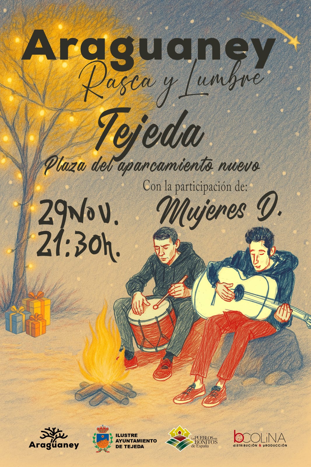 El grupo teldense Araguaney amenizará el encendido de la iluminación navideña en Tejeda, con el concierto Rasca y Lumbre que tendrá lugar este sábado día 29 de noviembre, a partir de las 21.30 horas.