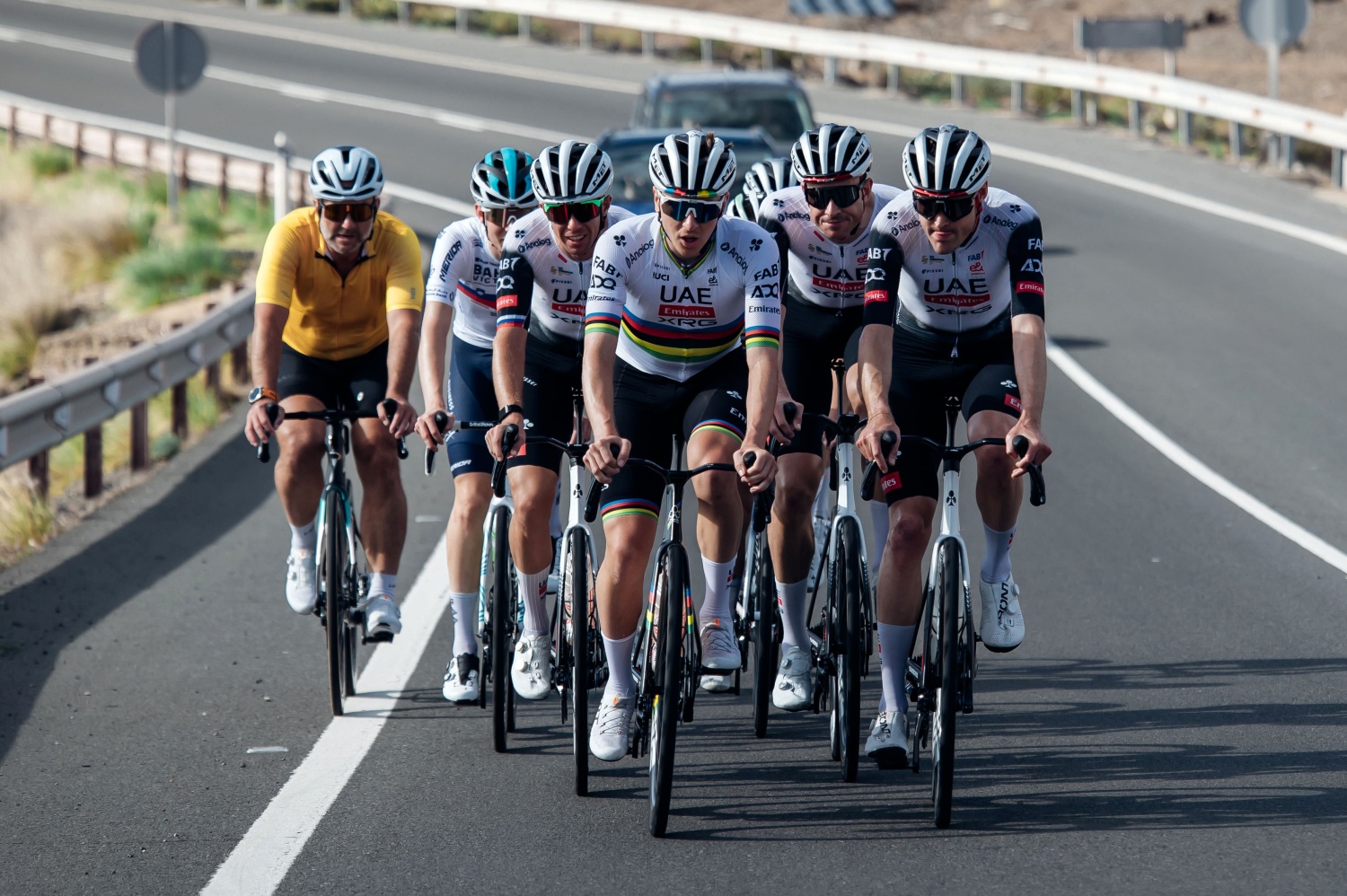 El ciclista esloveno Tadej Pogačar, ganador de cuatro Tour de Francia, un Giro de Italia y dos Campeonatos del Mundo, recorrió este jueves junto a su equipo las carreteras teldenses de La Breña y Cazadores, además de su paso por Agüimes.