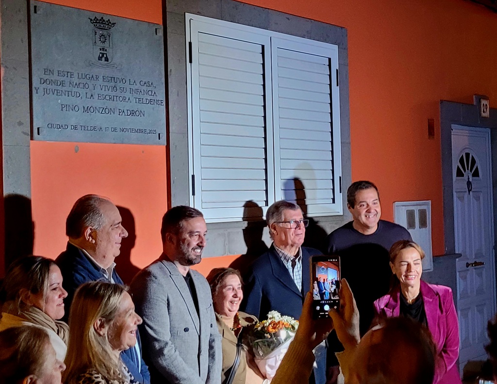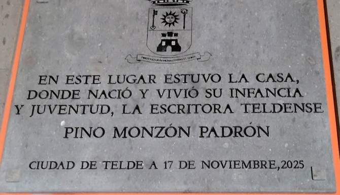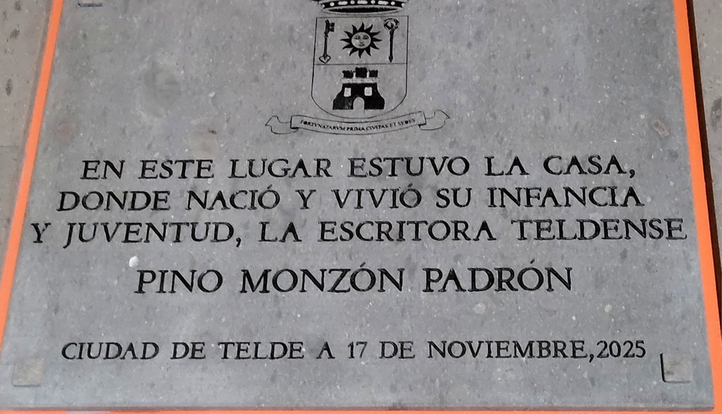 Memorable el acto institucional en el que se nos invita al descubrimiento de la placa dedicada a Pino Monzón Padrón, del número 29 en el corazón de la calle Palmito que ya adquiere protagonismo y memoria de la persona que orgullosa de su propia cuna, infancia y juventud como reza el texto: “En este lugar estuvo la casa donde nació y vivió su infancia y juventud, la escritora teldense Pino Monzón Padrón Ciudad de Telde 17 de noviembre 2025”, se le rinde tributo y memoria, y por extensión a sus antepasados de la que sus recuerdos son eternos, la buena gente de Palmito y de su amada ciudad, Telde.