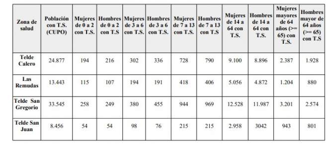Este centro atiende a 24.404 usuarios. Es el tercero de Telde con mayor número de beneficiarios de Tarjeta Sanitaria, sólo superado por San Gregorio (33.545) y el Calero (24.877). Por su parte, Las Remudas y San Juan tienen asignadas a 13.443 y 8.456 personas respectivamente.