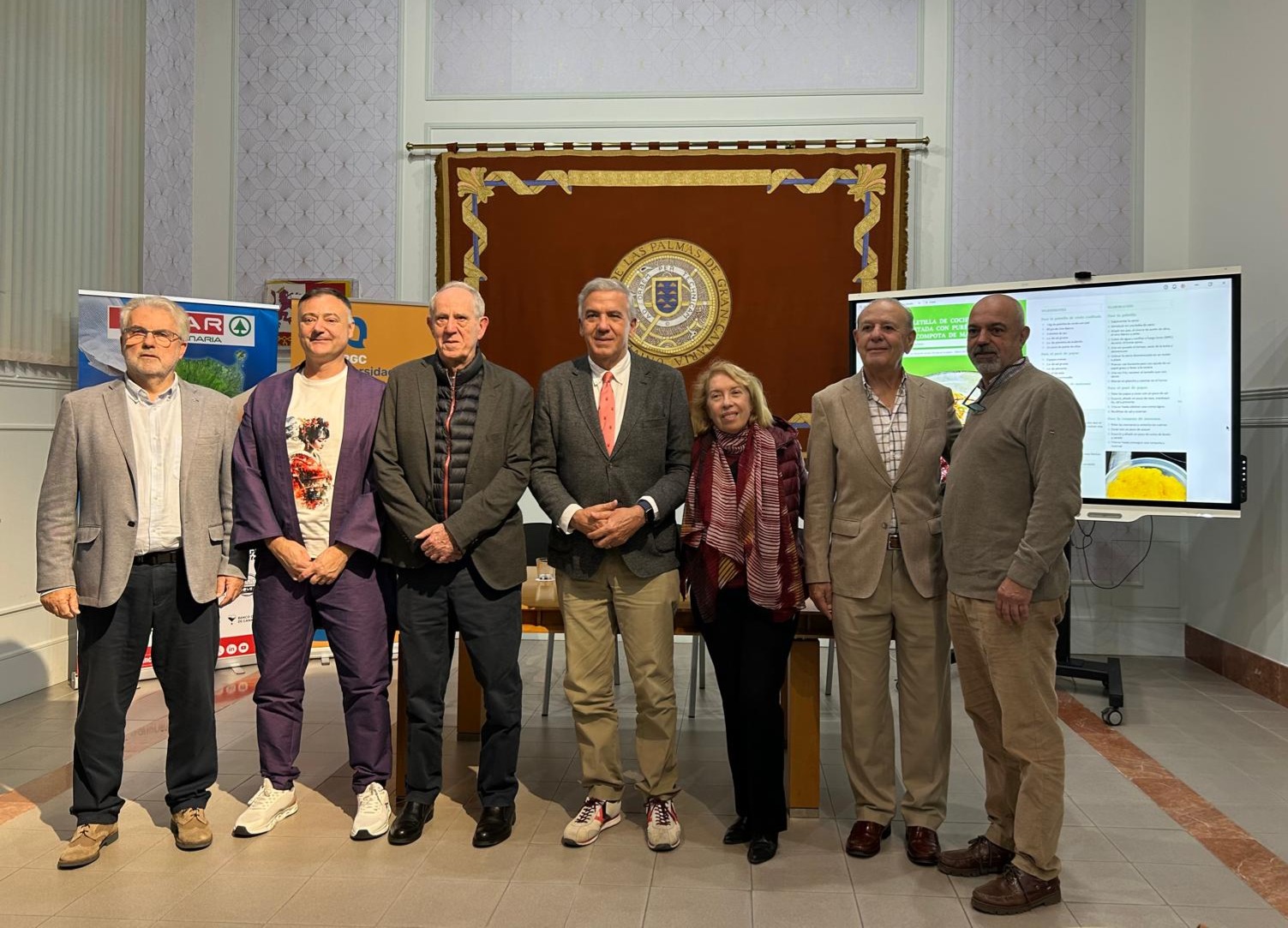 El acto, que tuvo lugar en el Rectorado de la Universidad de Las Palmas de Gran Canaria, en Vegueta, fue abierto por el rector de la institución, Lluís Serra, y contó con la presencia del presidente del Banco de Alimentos de Las Palmas, Pedro Llorca, y el vicepresidente de SPAR Gran Canaria, José López.