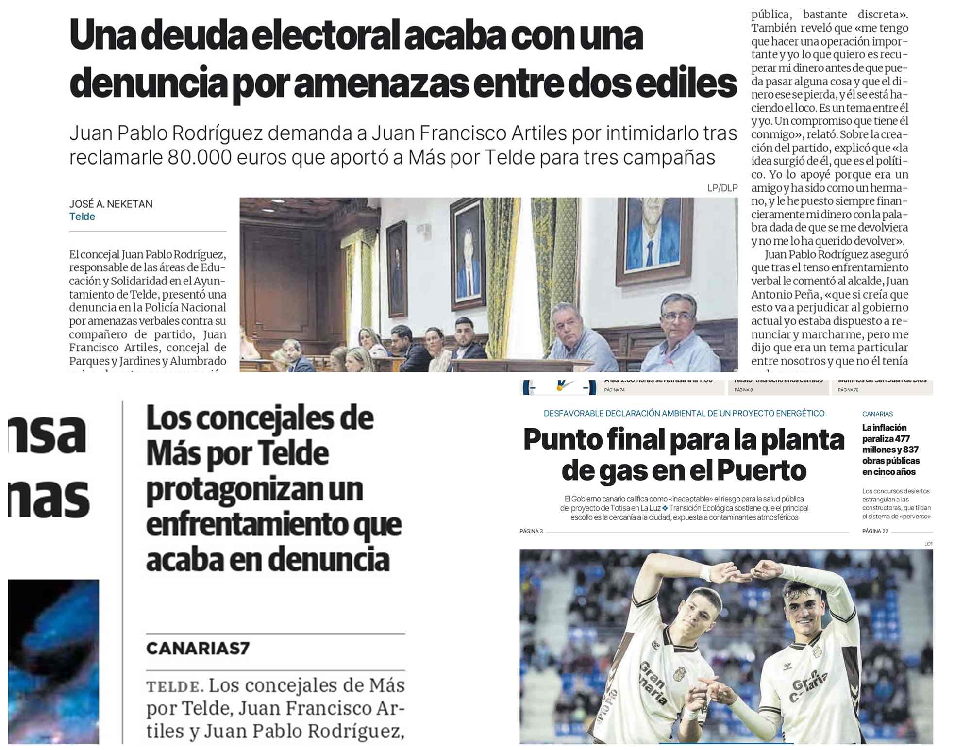 El Juzgado de Instrucción nº 2 de Telde ha decretado el archivo provisional de la causa abierta por el enfrentamiento entre los concejales de Más por Telde, Juan Francisco Artiles y Juan Pablo Rodríguez. La magistrada Cristina Sbert Pinilla concluye que no existen pruebas suficientes para sostener una acusación penal por un presunto delito leve de amenazas, según el auto emitido el 26 de noviembre de 2025 que fue avanzado el pasado viernes por TELDEACTUALIDAD.