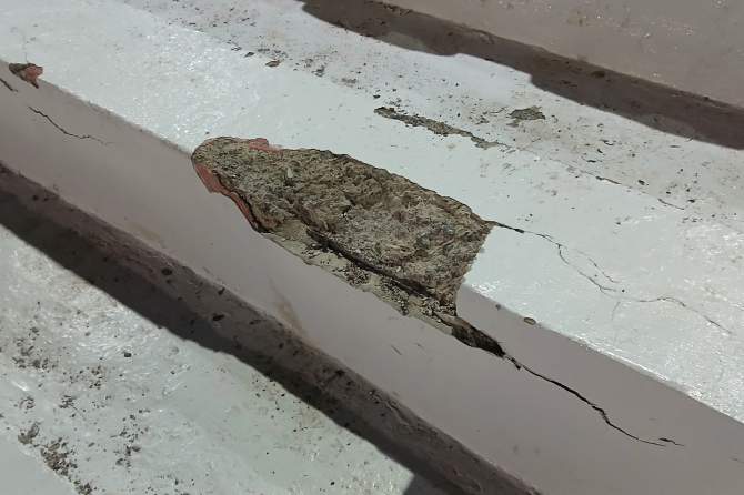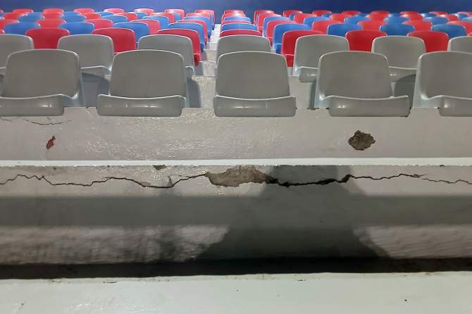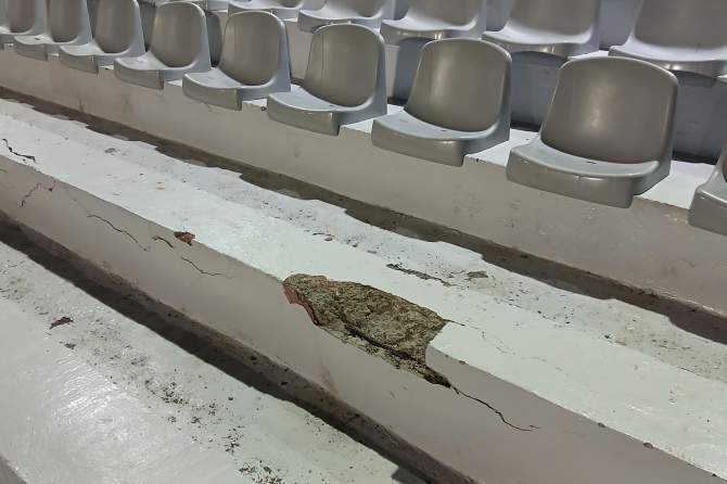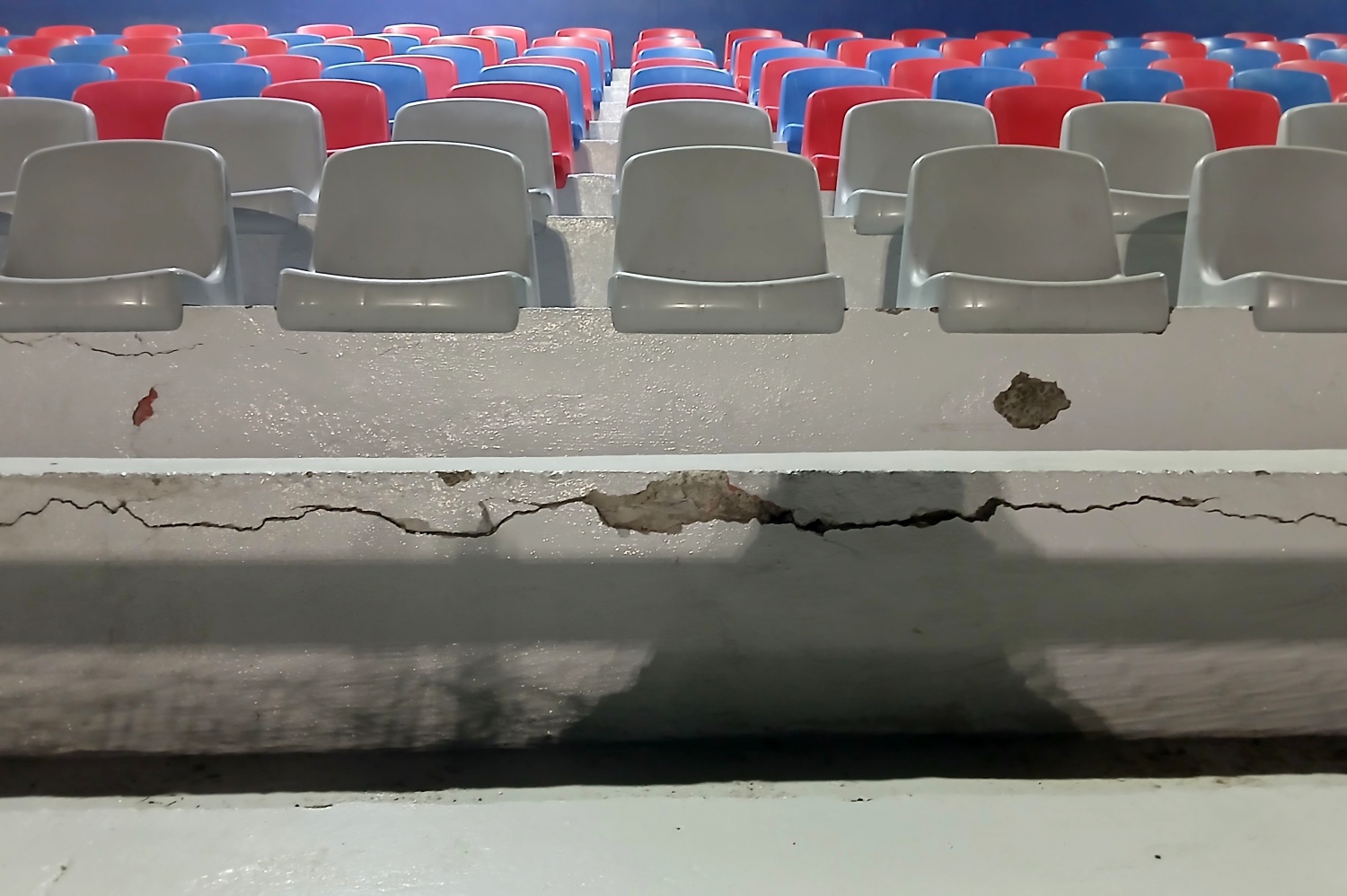 El estadio Pablo Hernández Morales, donde entrena y juega la UD Telde y toda su cadena, está dando sus primeros síntomas de deterioro casi cuatro años después de su reapertura. Una fila de la parte norte del graderío aparece con desperfectos en los escalones, donde se observan grietas, pérdida del recubrimiento superficial, partes en las que el hormigón y el acero de refuerzo quedan al descubierto y alguna silla con el respaldo roto debido, principalmente, a los balonazos.