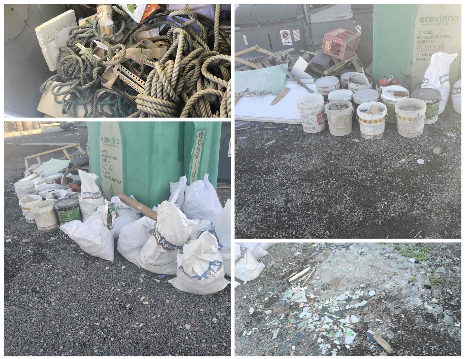 Cristales rotos y contenedores saturados