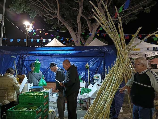 A partir de las 20:30 horas, el público fue aumentando. Los asistentes se concentraron en las inmediaciones de la plaza, pues tenía lugar el II Encuentro con las tradiciones culturales y populares Xinámar. Las sillas de plástico blanco, colocadas en el interior del recinto, miraban hacia el escenario colocado en dirección al Bar Rivero. Sin darse cuenta, los asistentes a un encuentro con las tradiciones daban la espalda a la tradición que da identidad y sabor a la fiesta de Jinámar. Ahora mismo, el puesto de Ángel es el único que queda en las fiestas de la Caña dulce. Si él no vuelve, ¿quién va a vender caña en las fiestas de Jinámar?