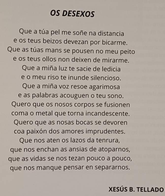 ⁃ Xesús siente el orgullo de un trabajo bien hecho, el placer que supone el reconocimiento al esfuerzo y la calidad literaria de un buen grupo de amigas y amigos -elucubré, pero mantuve el silencio.